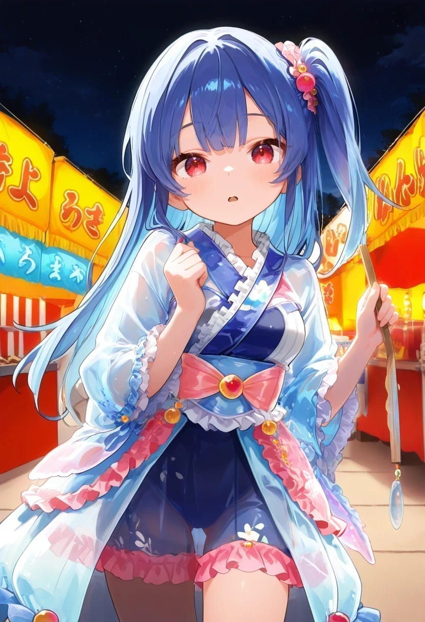 one side up,hair scrunchie,hair bobbles,japanese clothes,frills,overskirt,see-through clothes,