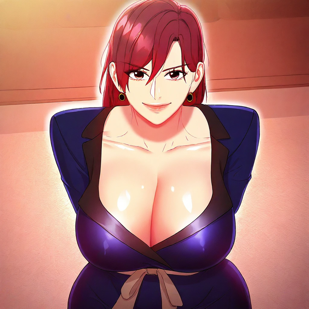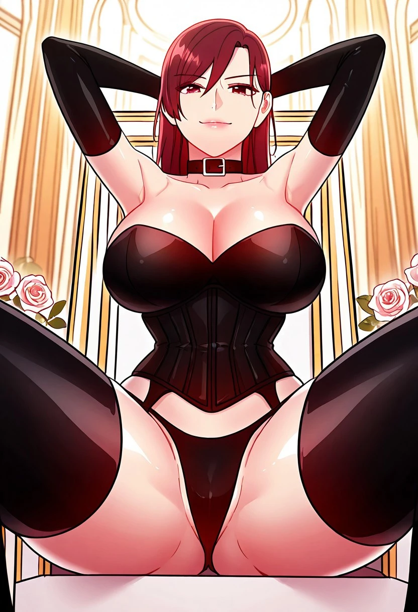 (( <lora:gyong-eun:1> , gyong-eun, piercing scarlet eyes, clear eyes, bright pupils, beautiful eyes, beautiful red hair, beautiful long hair, bangs, huge and shaggy breast, thin waist, wide hips, beautiful skin, beauty, extraordinary beautiful woman, attractive woman, super sexy woman, lustful body, sexy woman with seductive obscene body, sensual body, voluptuous body, ))