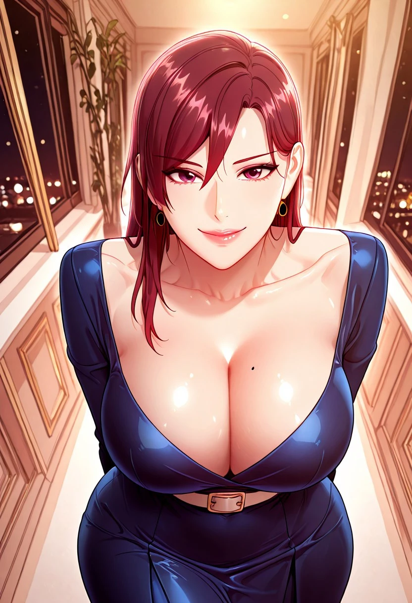 9. ((red night robe, obscene cleavage, huge cleavage, ))