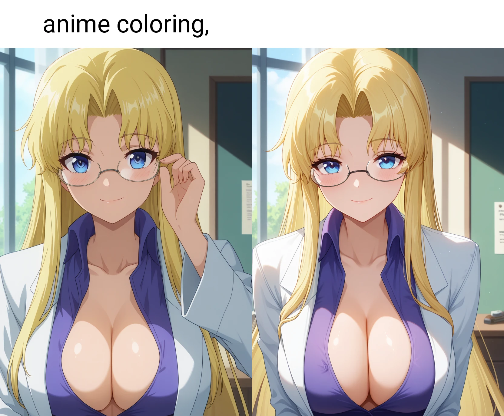 Using 'anime coloring' in the prompt will make the illustration look closer to an anime style.