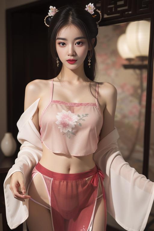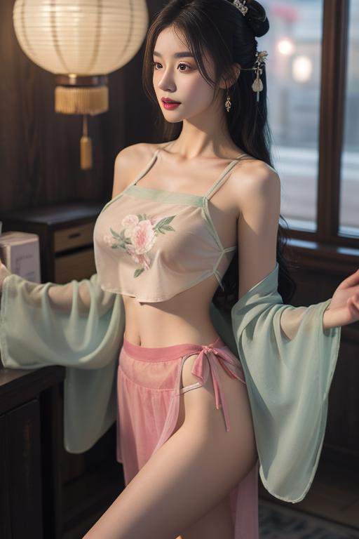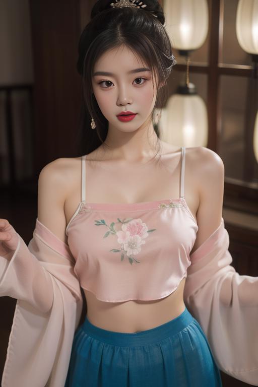 hanfu, camisole,see-through, shirt, chinese clothes, skirt, long sleeves,wide sleeves, dress, jewelry,hair ornament,