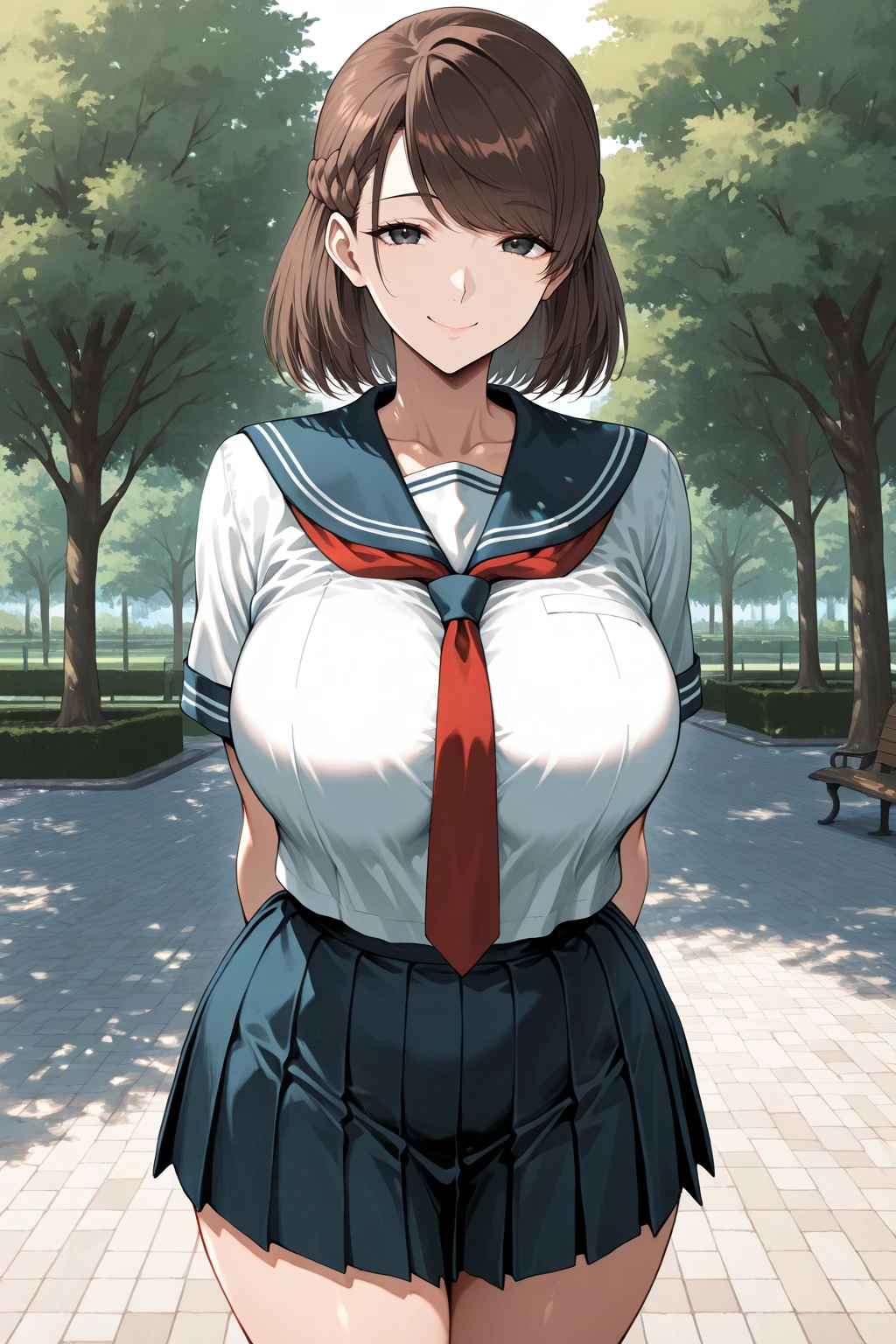 ffharuk@, brown hair, short hair, swept bangs, braid, black eyes