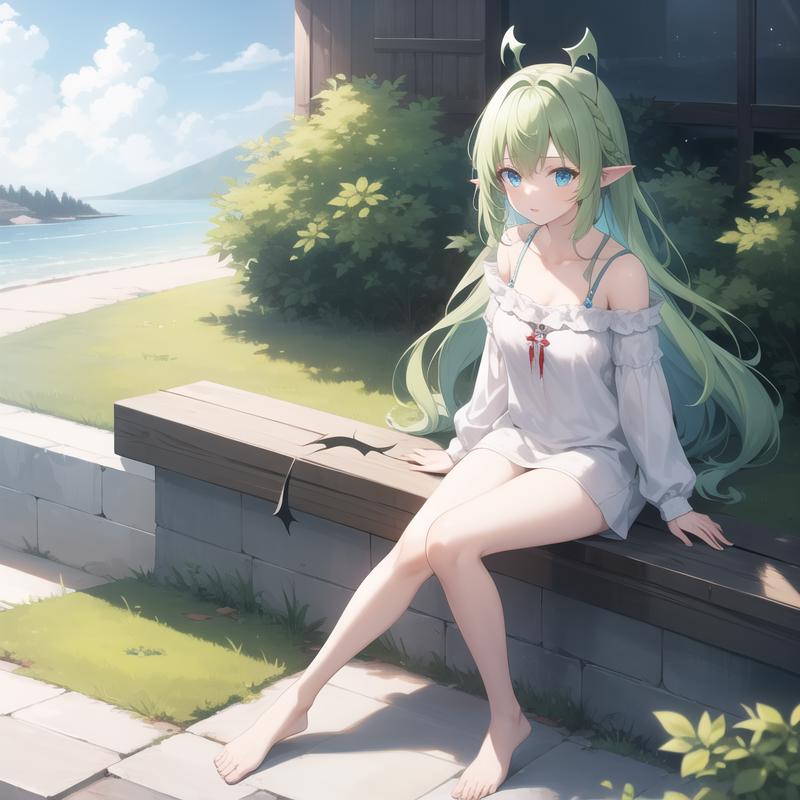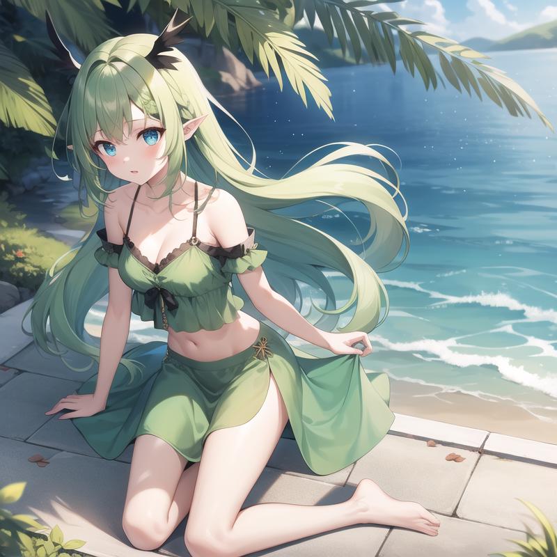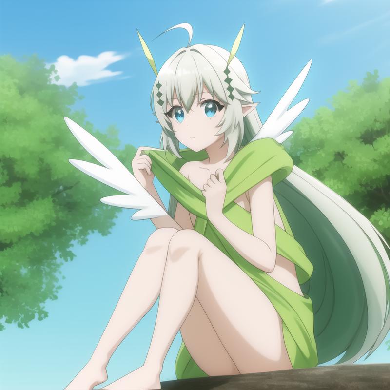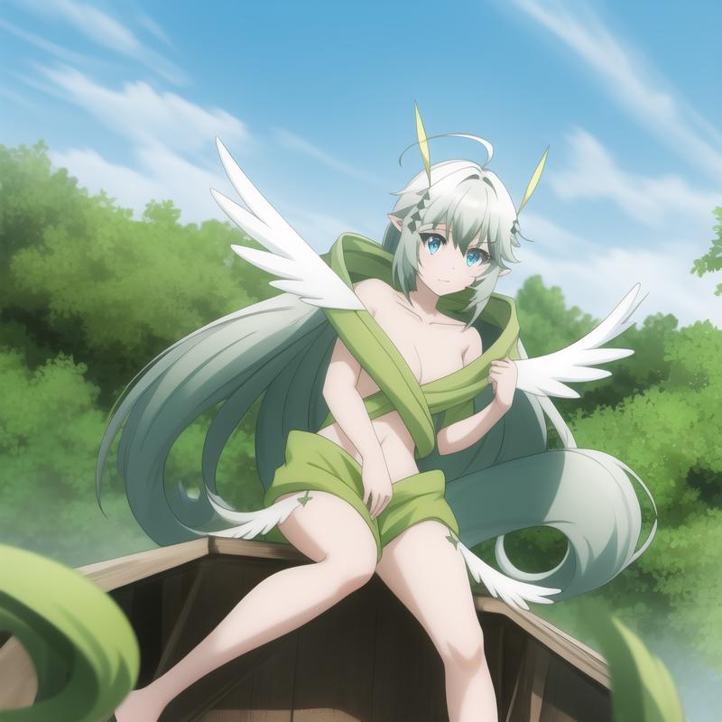 Trigger Word: icm-aerial, green hagoromo, midriff, green dress, white wings