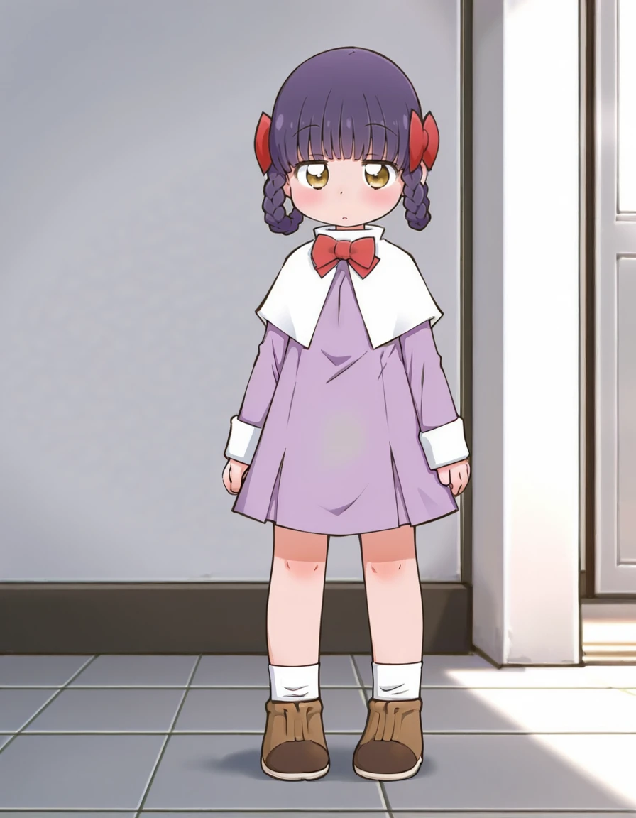 制服の色は髪の色に釣られがちになるので、できればlight purple dressと指定してあげて下さい