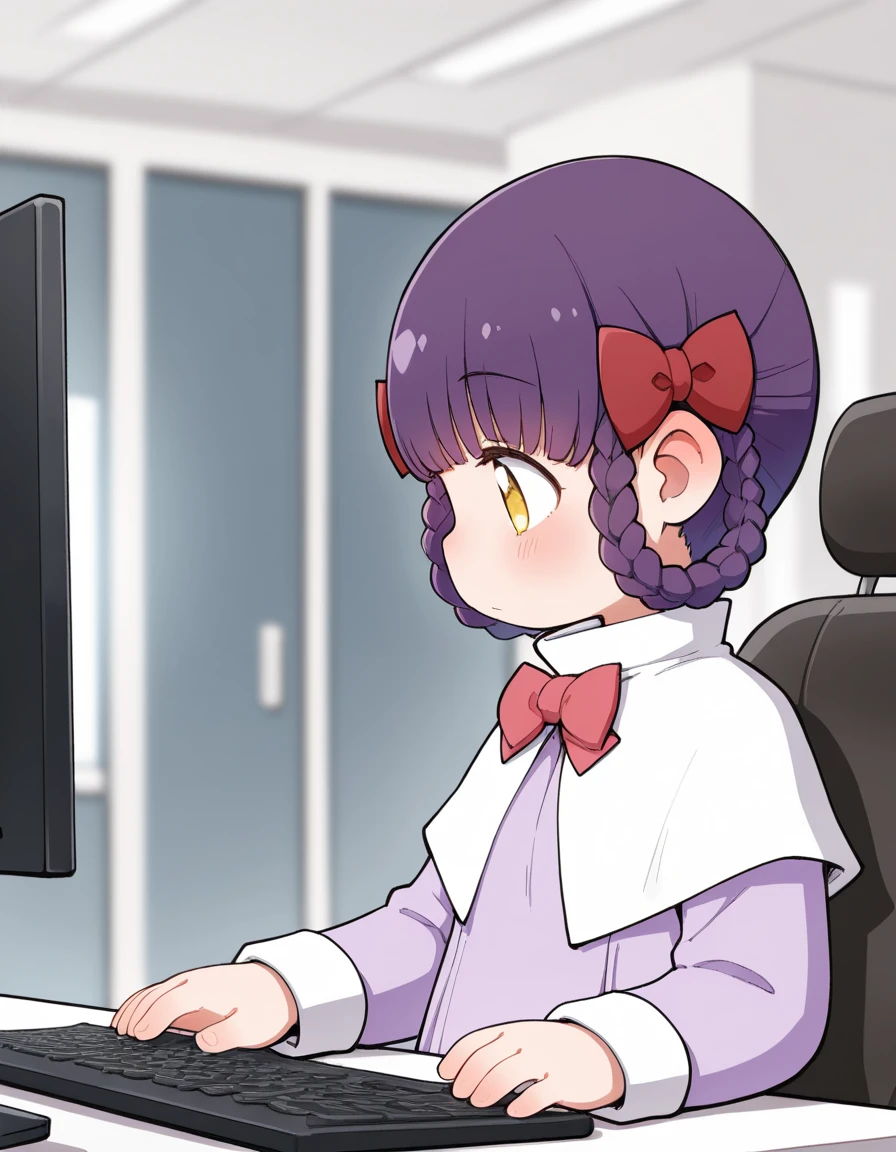 The uniform color tends to match her hair color, so if possible, please specify “light purple dress.”