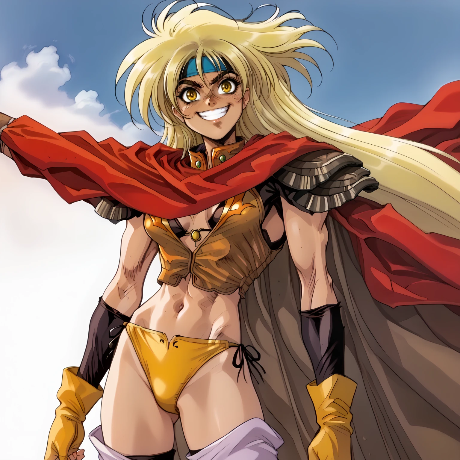 VSJum,1girl,blonde hair,long hair,headband,yellow eyes,