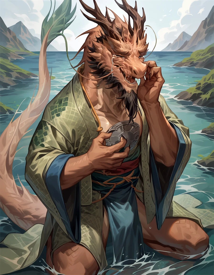 Trigger: chenloong, eastern dragon, anthro, solo, male, beard