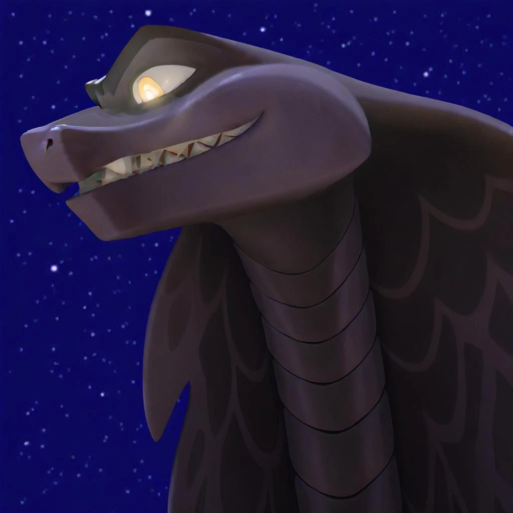saladin, feral, sahara 2017 movie , snake, cobra, hypnotic yellow eyes, reptile, snake hood, white sclerals, yellow iris, white shining pupils, dark-violet body, dark-violet scales, black body, black scales, two tone scales, solo, dark body markings long body, fangs, forked tongue, night desert, male,