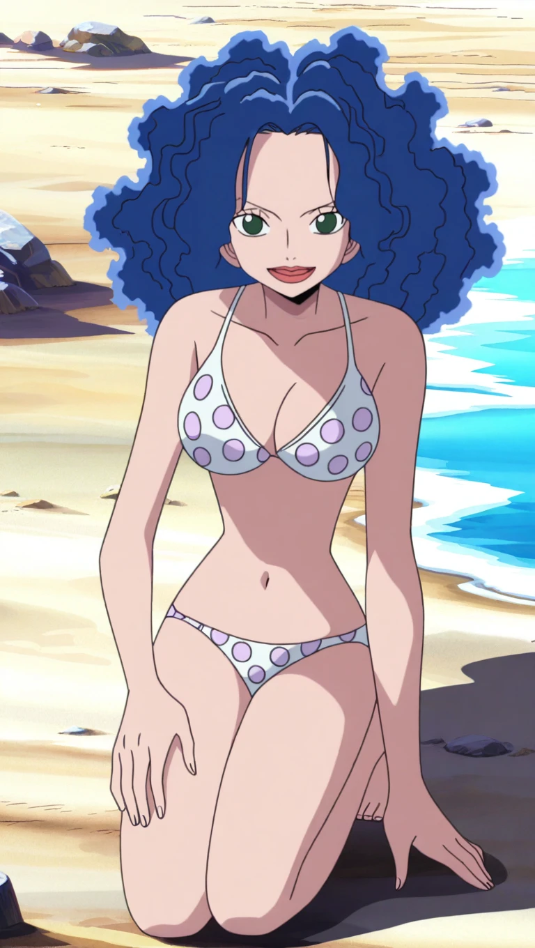 bikini outfit 1, polka dot bikini, polka dot bra, polka dot panties, breasts, medium breasts, navel, cleavage,