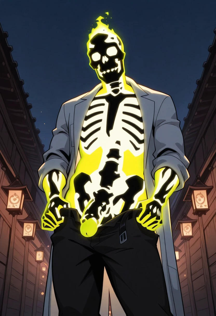 male focus, 1boy, Doctor Phosphorus, Dr. Phosphorus, Skeleton, glowing, solo