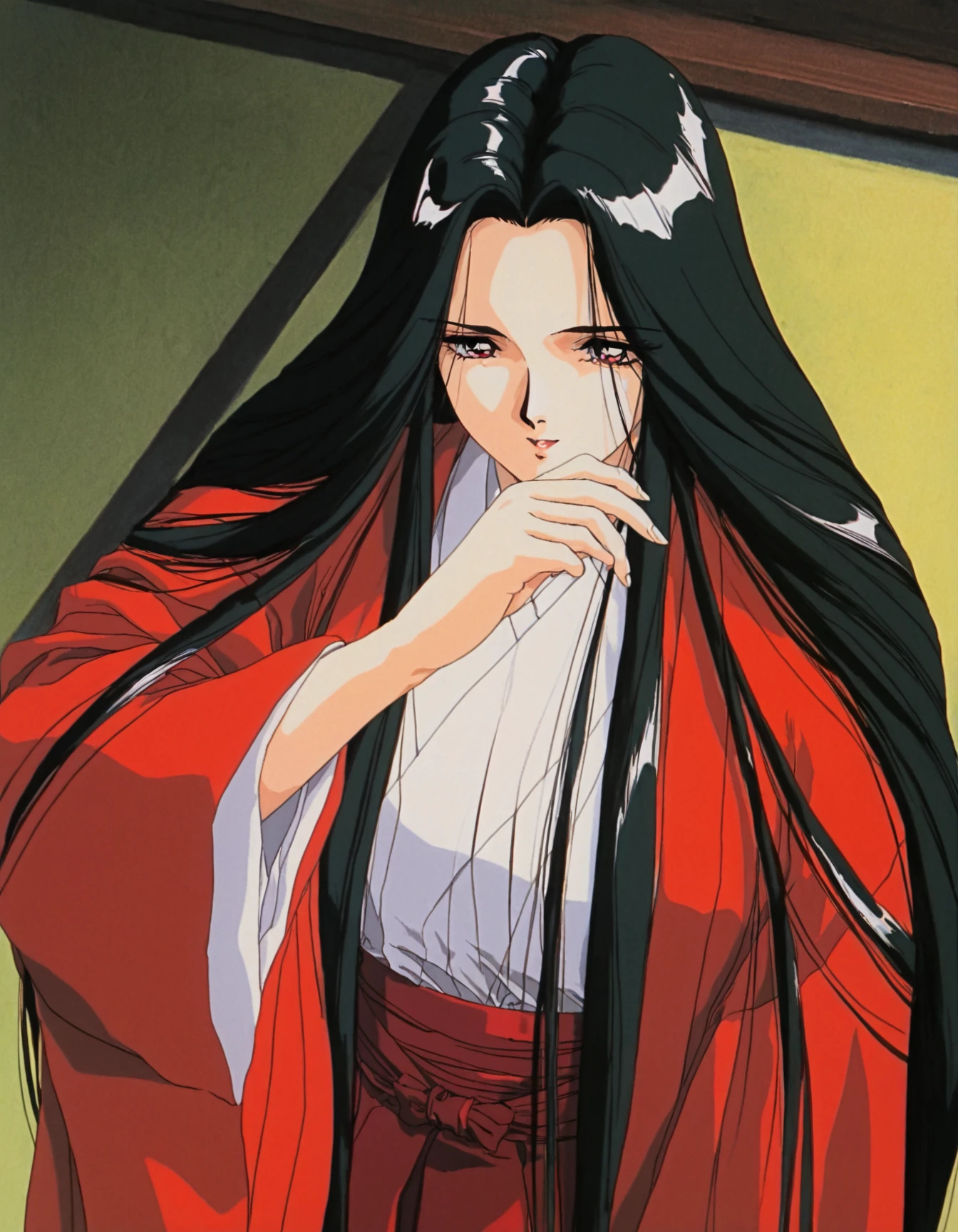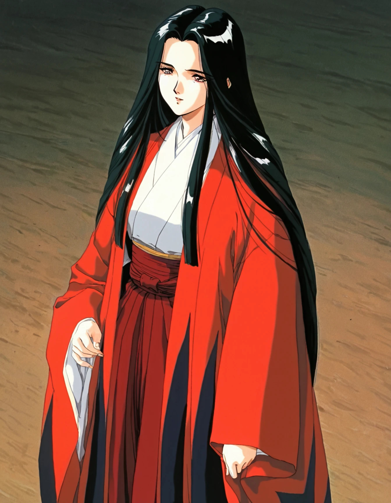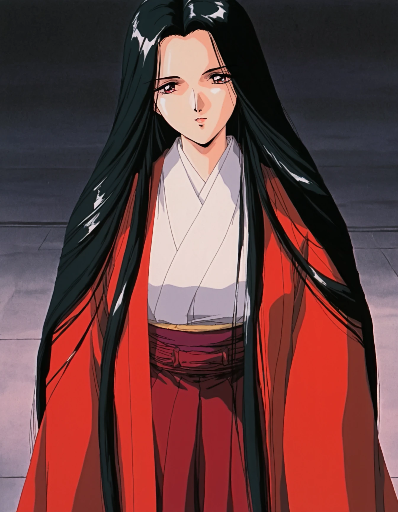 🔹 Costume Prompts: long hair, skirt, long sleeves, japanese clothes, wide sleeves, kimono, hakama, hakama skirt, red hakama, red haori,
