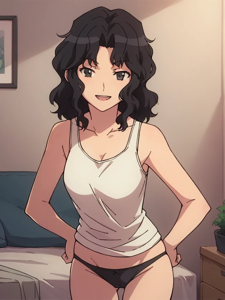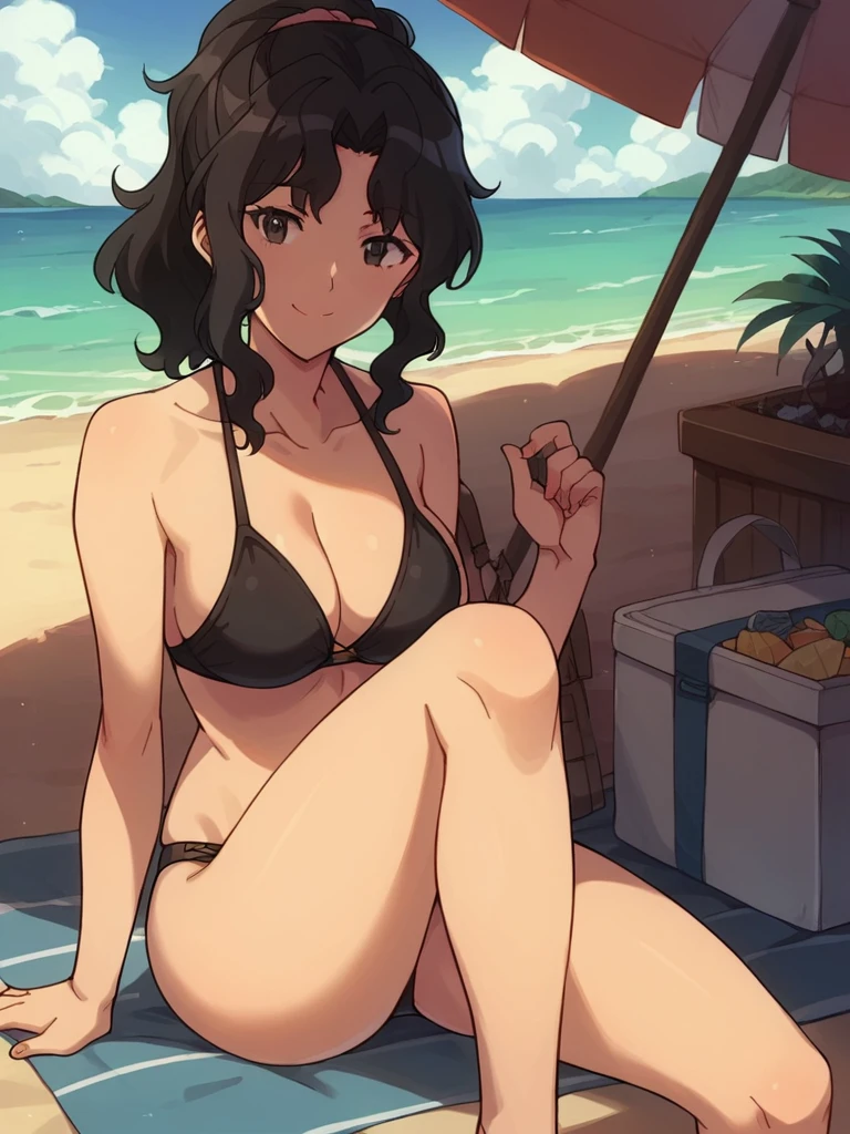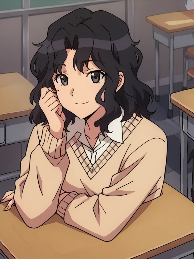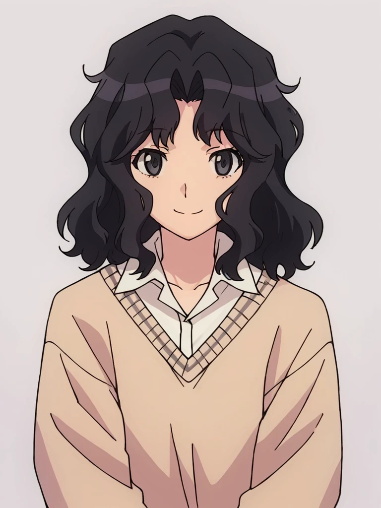 tanamichi kaoru, black hair, medium hair, wavy hair, black eyes,