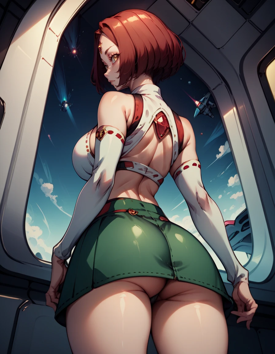 yellow eyes, short hair, red hair,