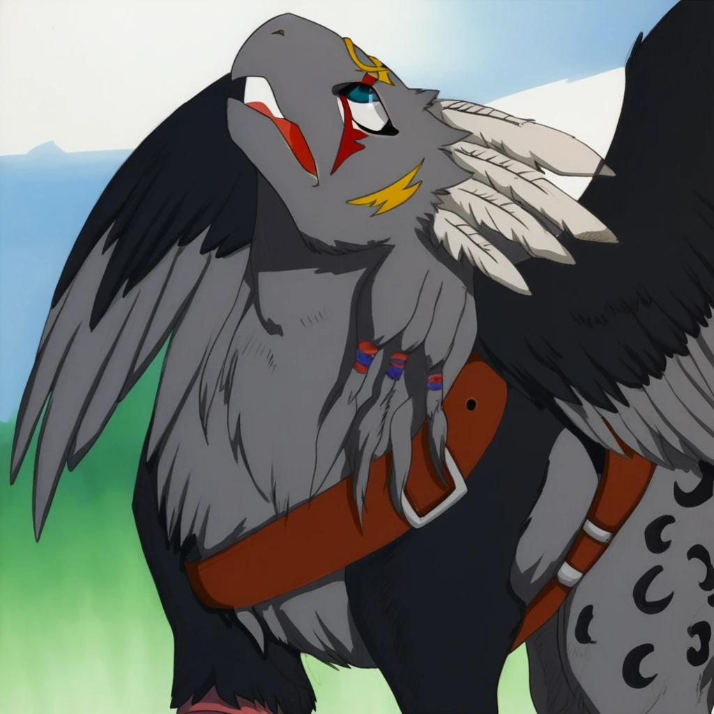 garion(legendz),gryphon,avian,grey body,spotted body,head markings,beak,feathered wings,talons,belt,bracelet