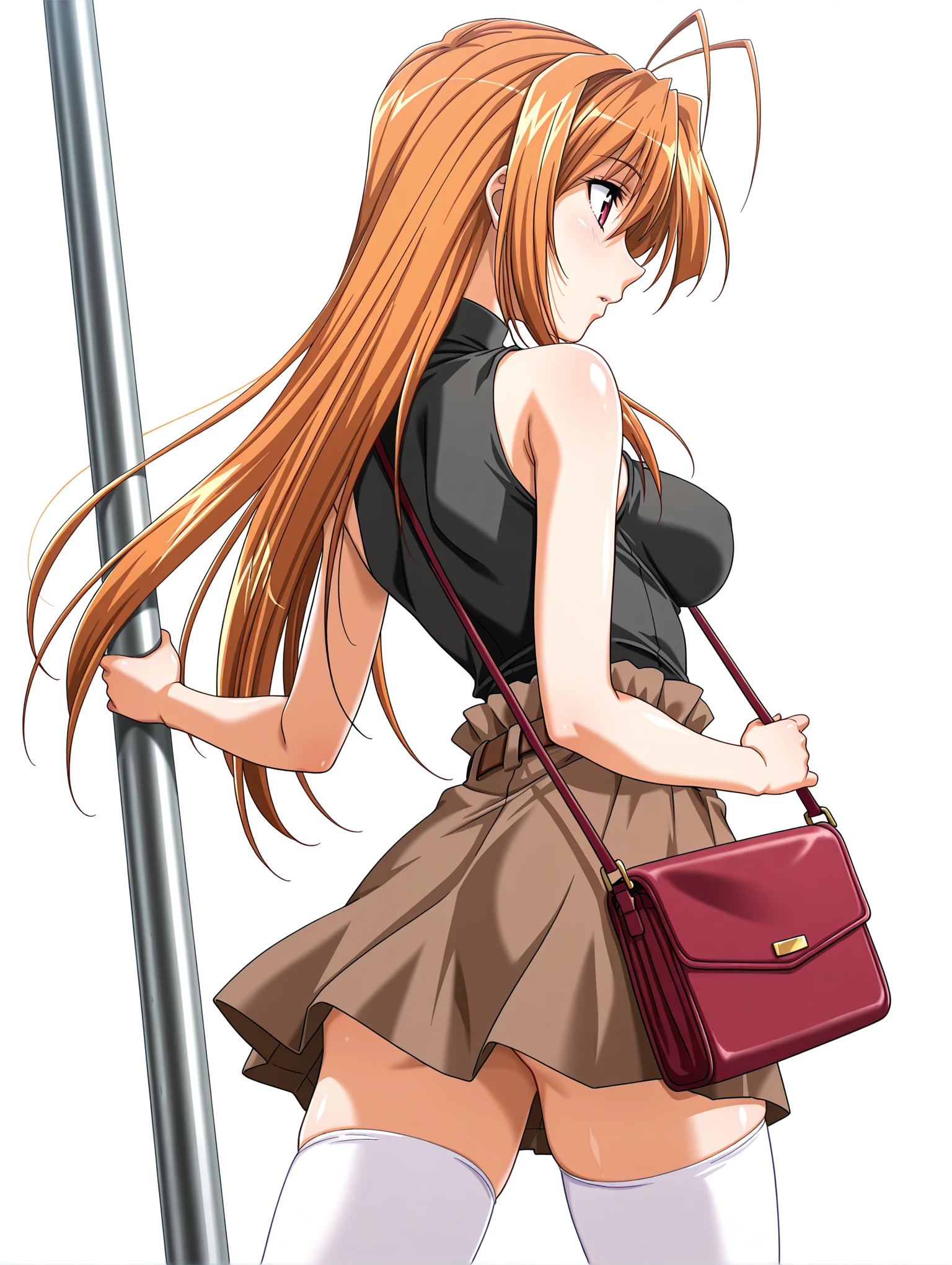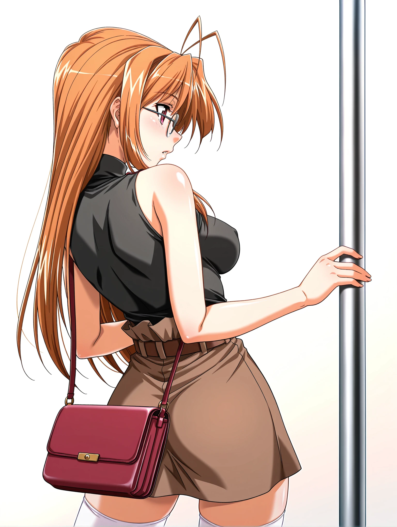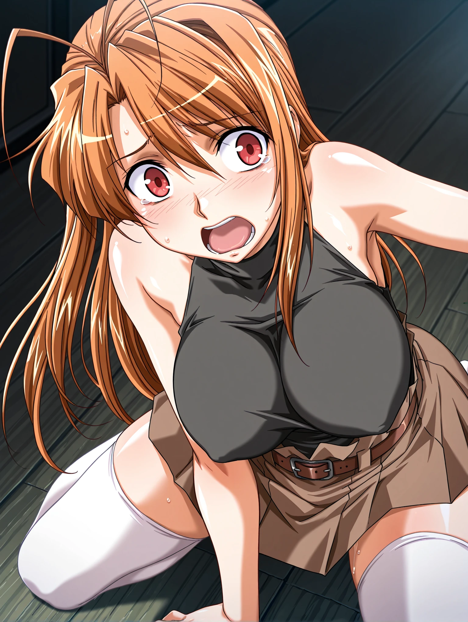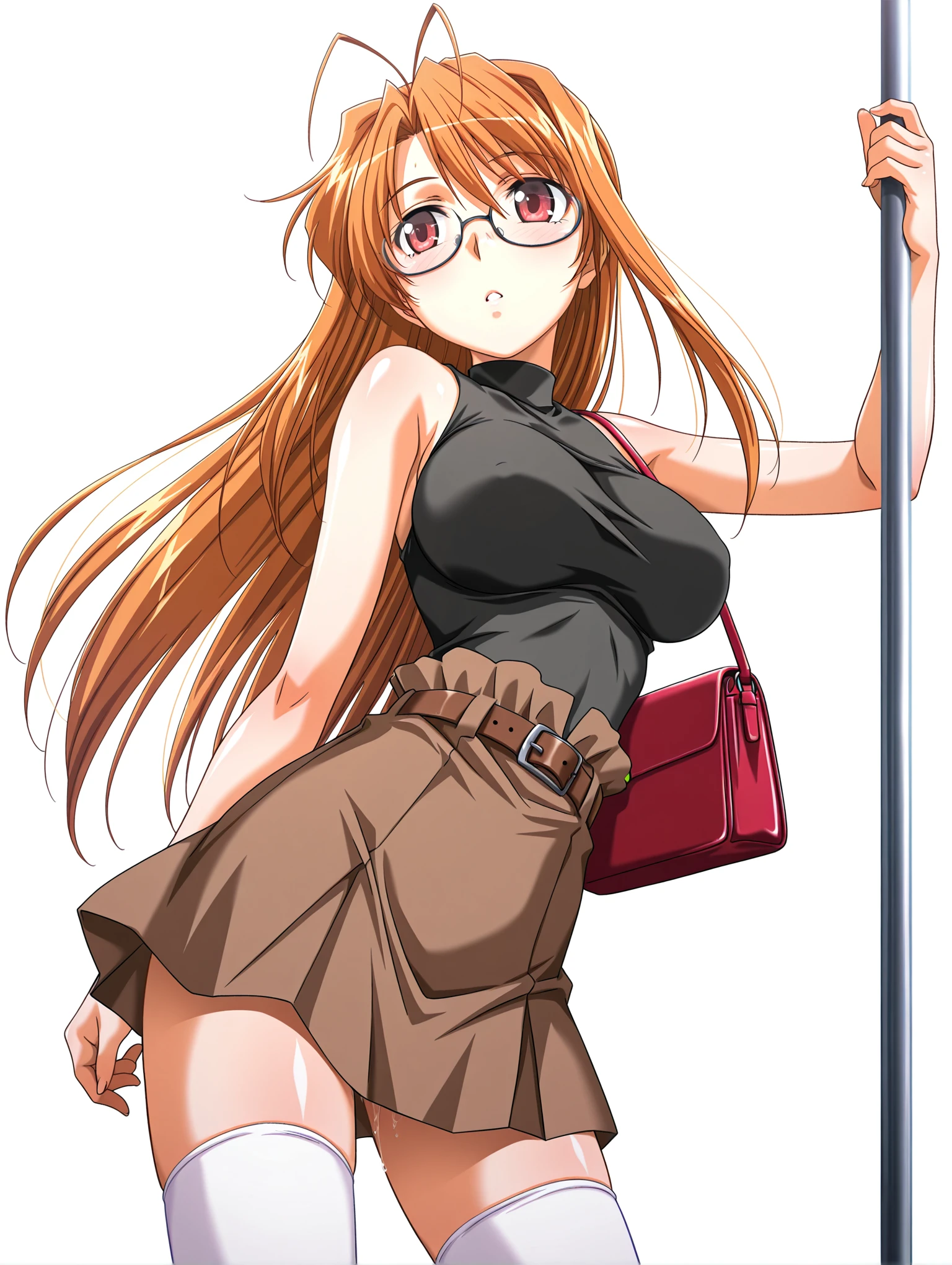 oneesan,antenna hair,orange hair,long hair,red eyes,