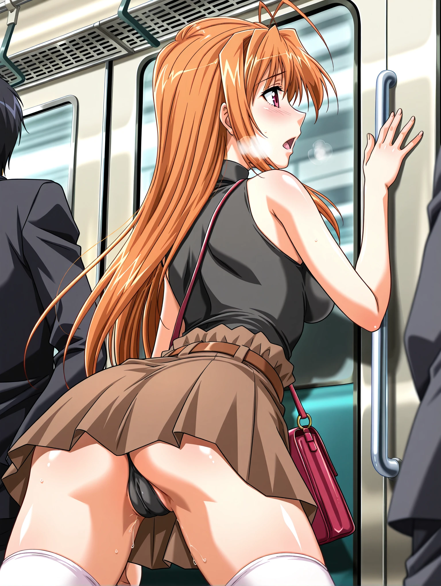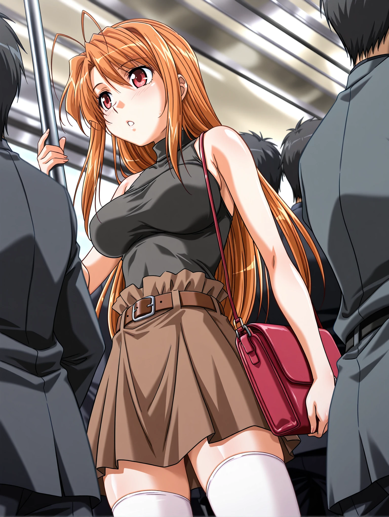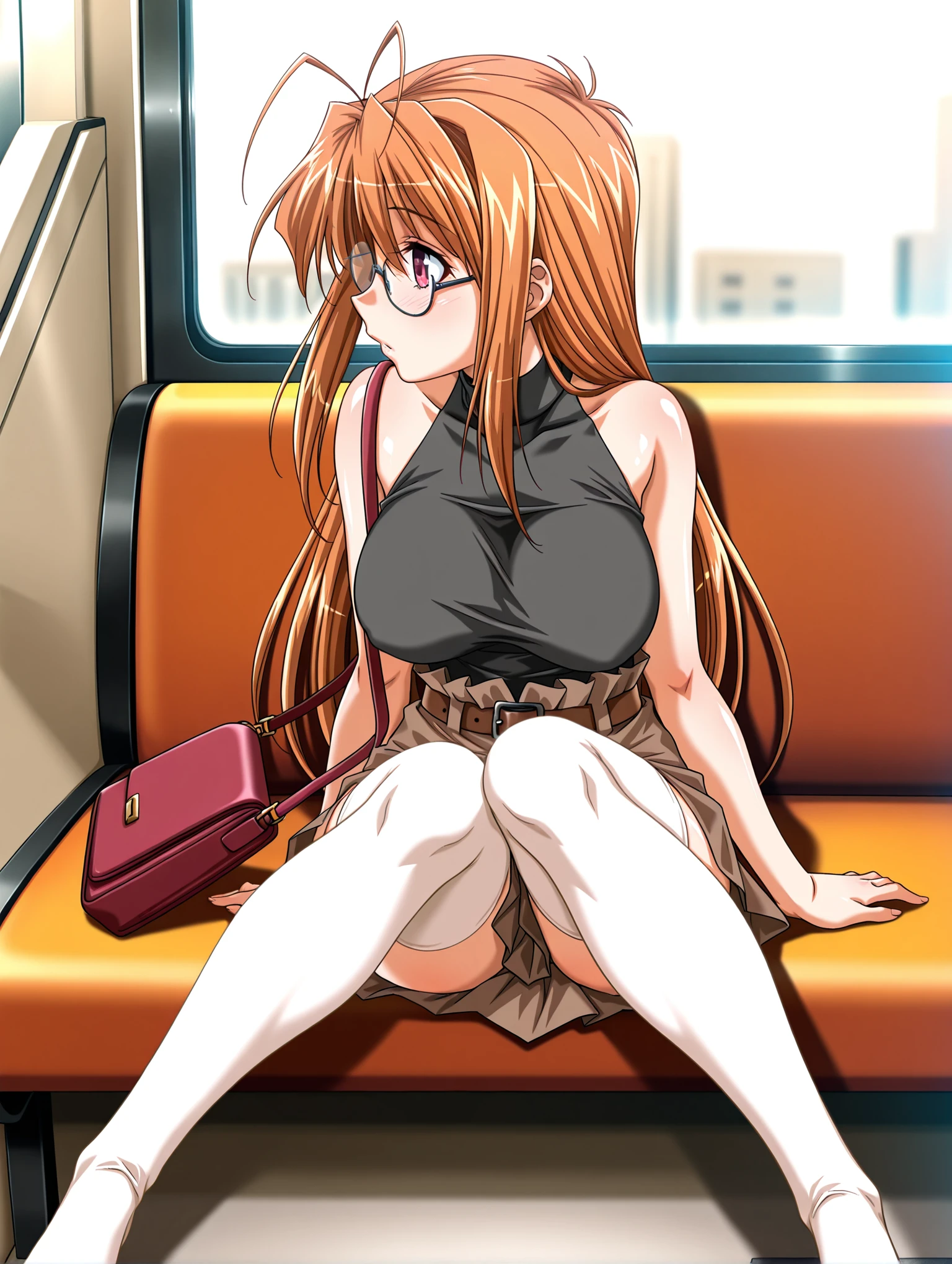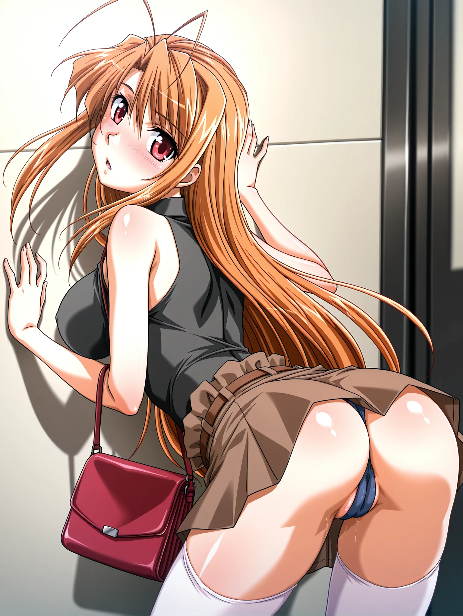 oneesan,antenna hair,orange hair,long hair,red eyes,