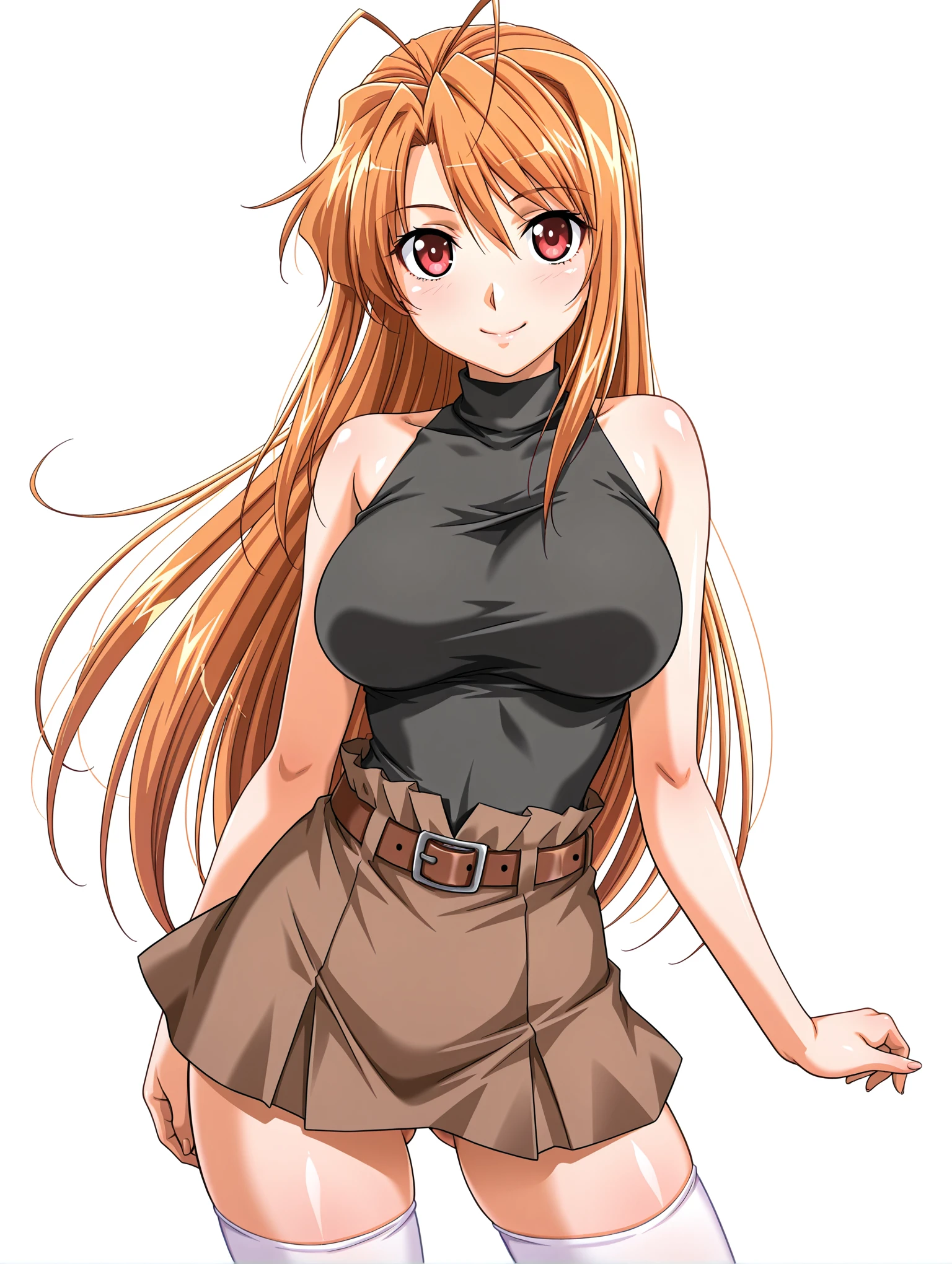 black sleeveless turtleneck,belt,skirt,white_thighhighs,