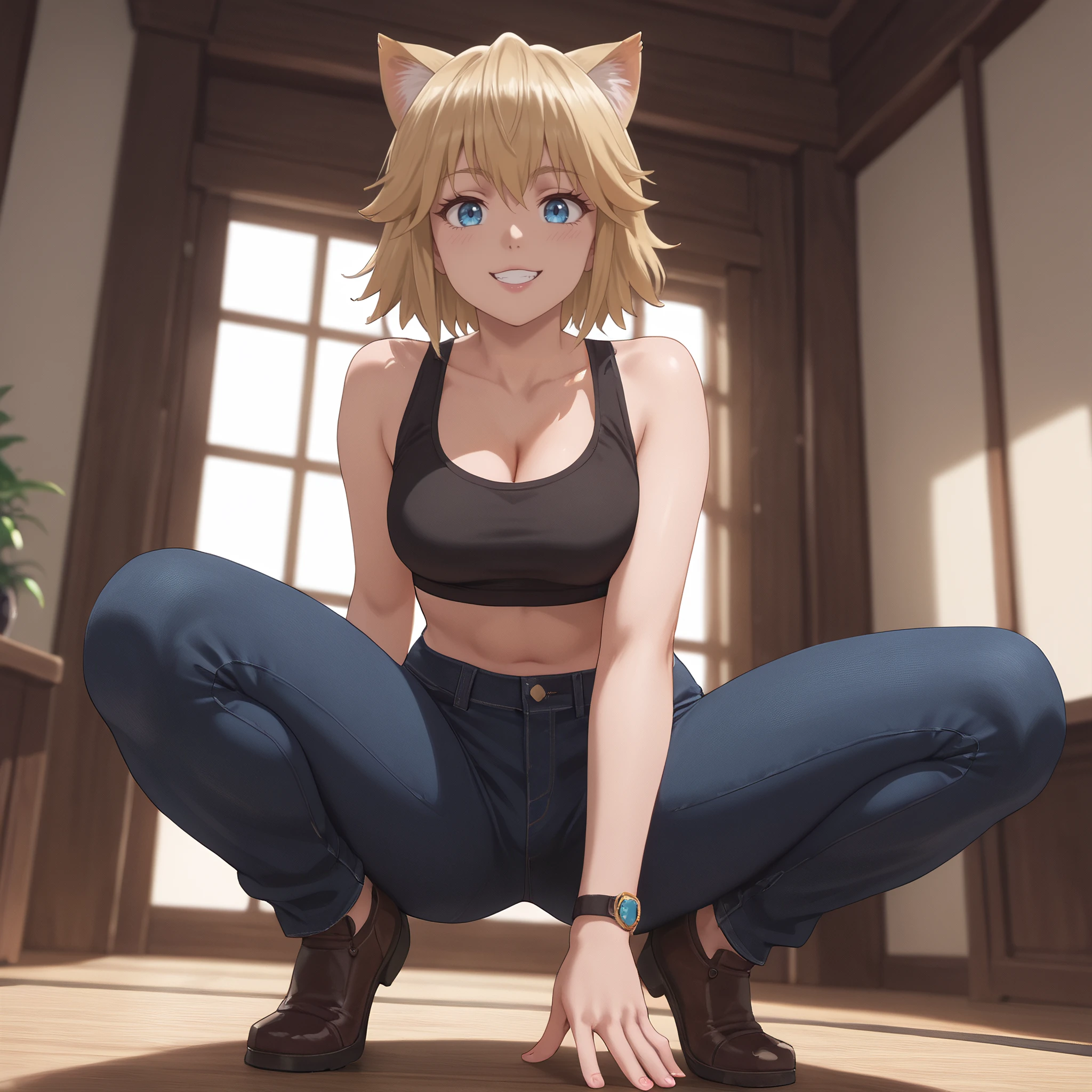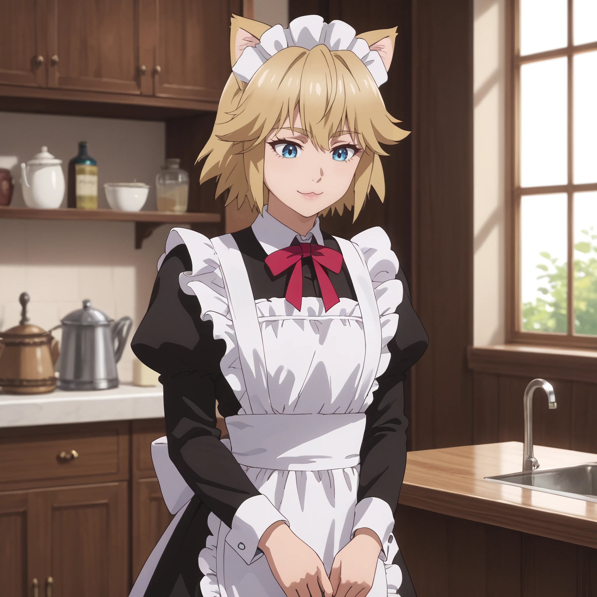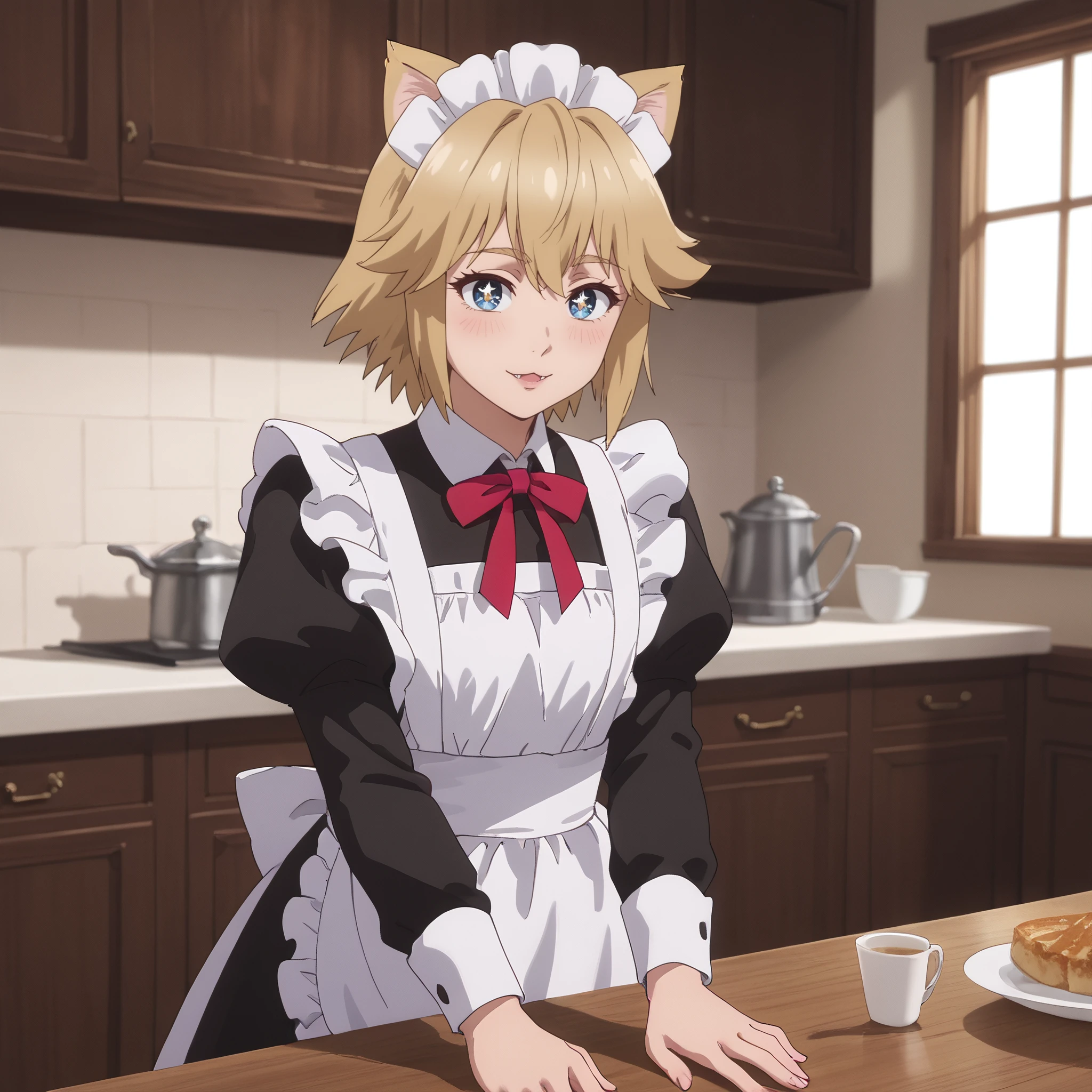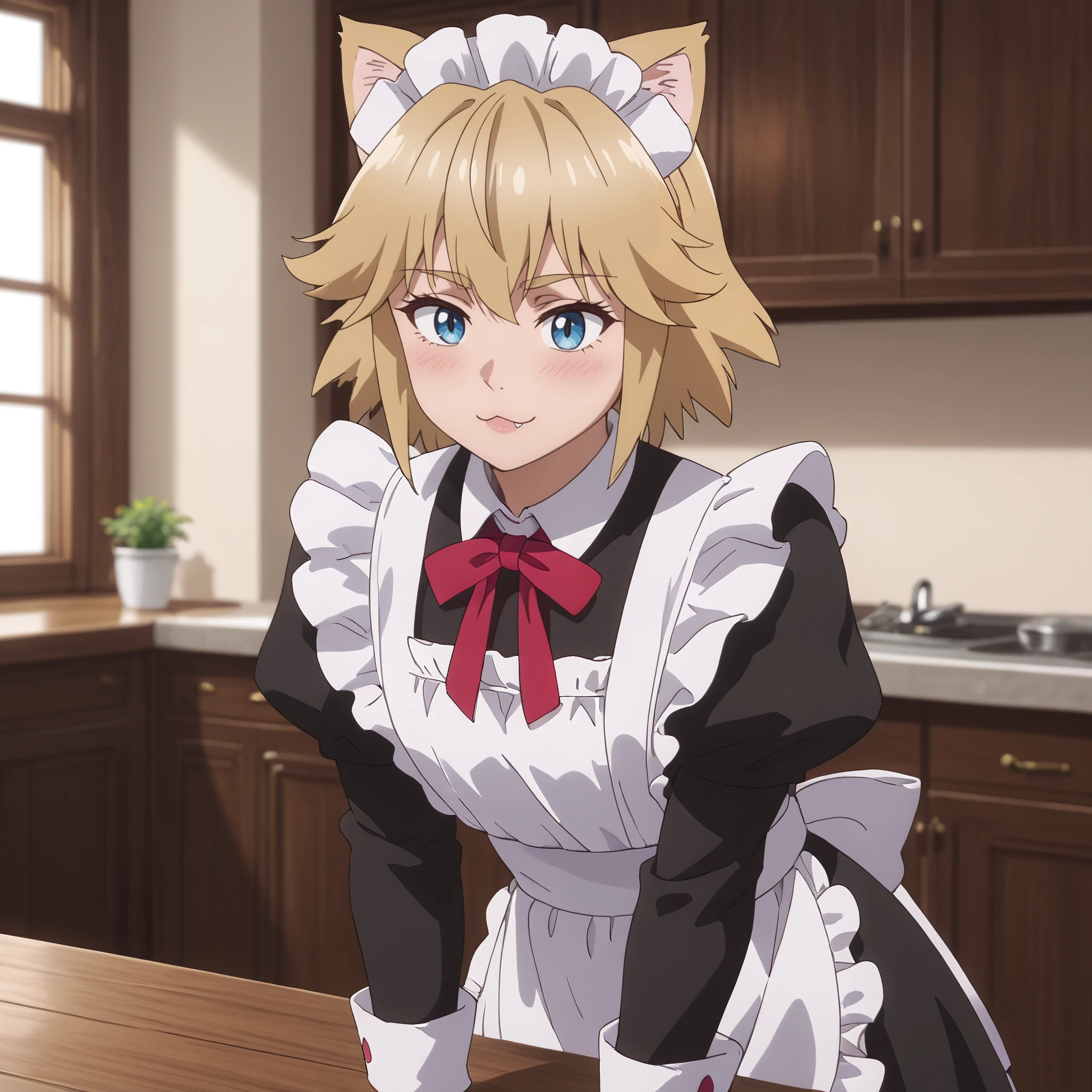 ARTMathilde, blonde hair, eyebrows visible through hair, short hair, blue eyes, bangs, animal ears, cat ears,