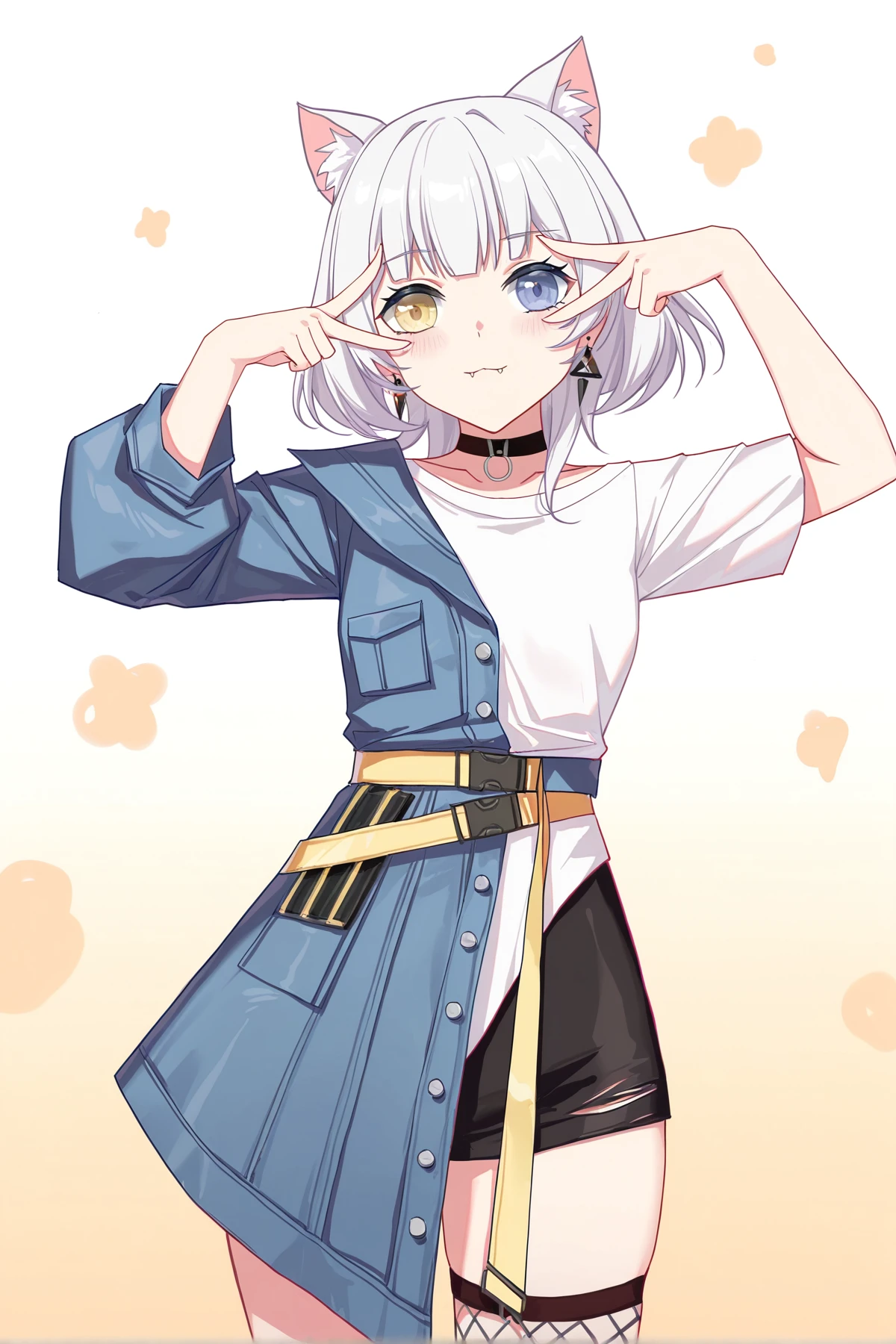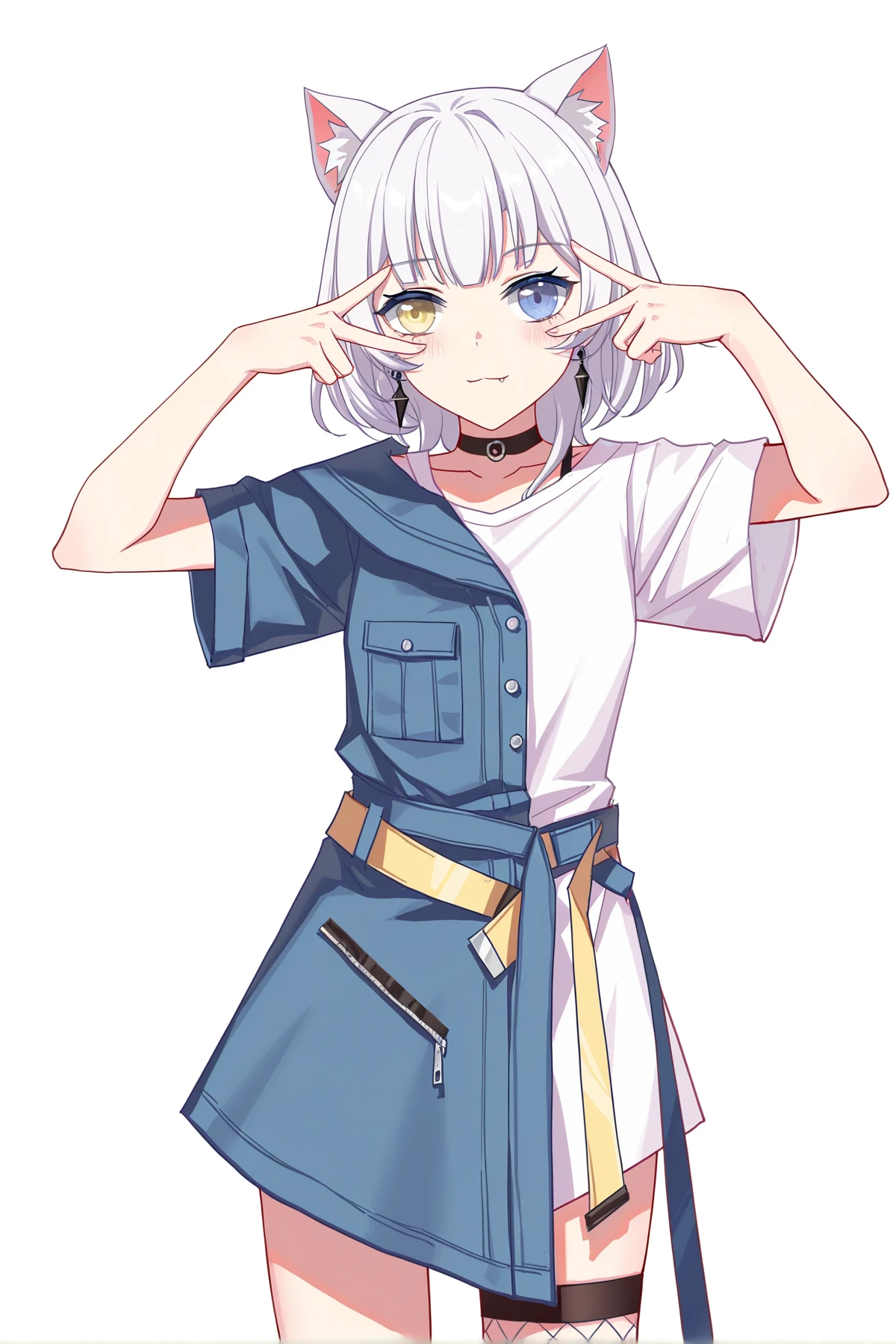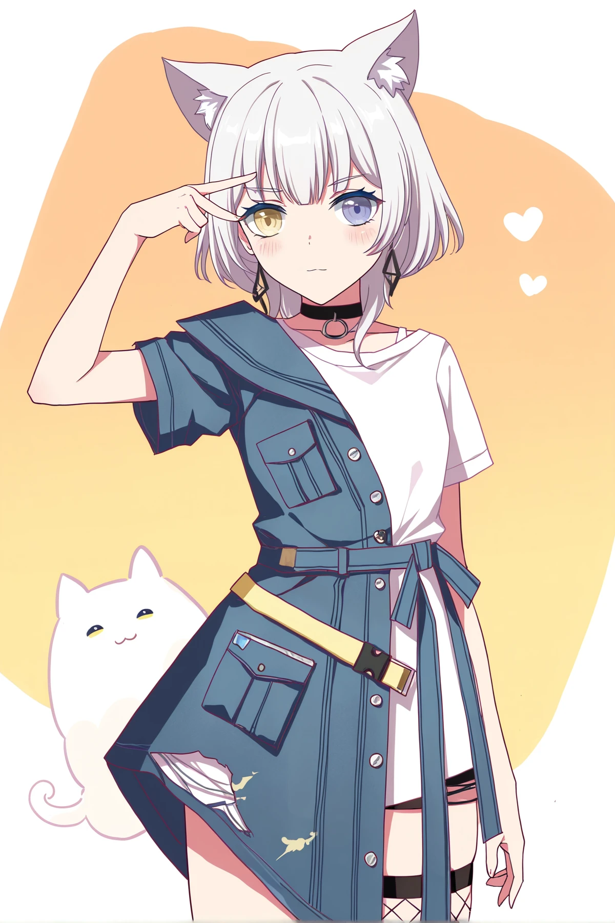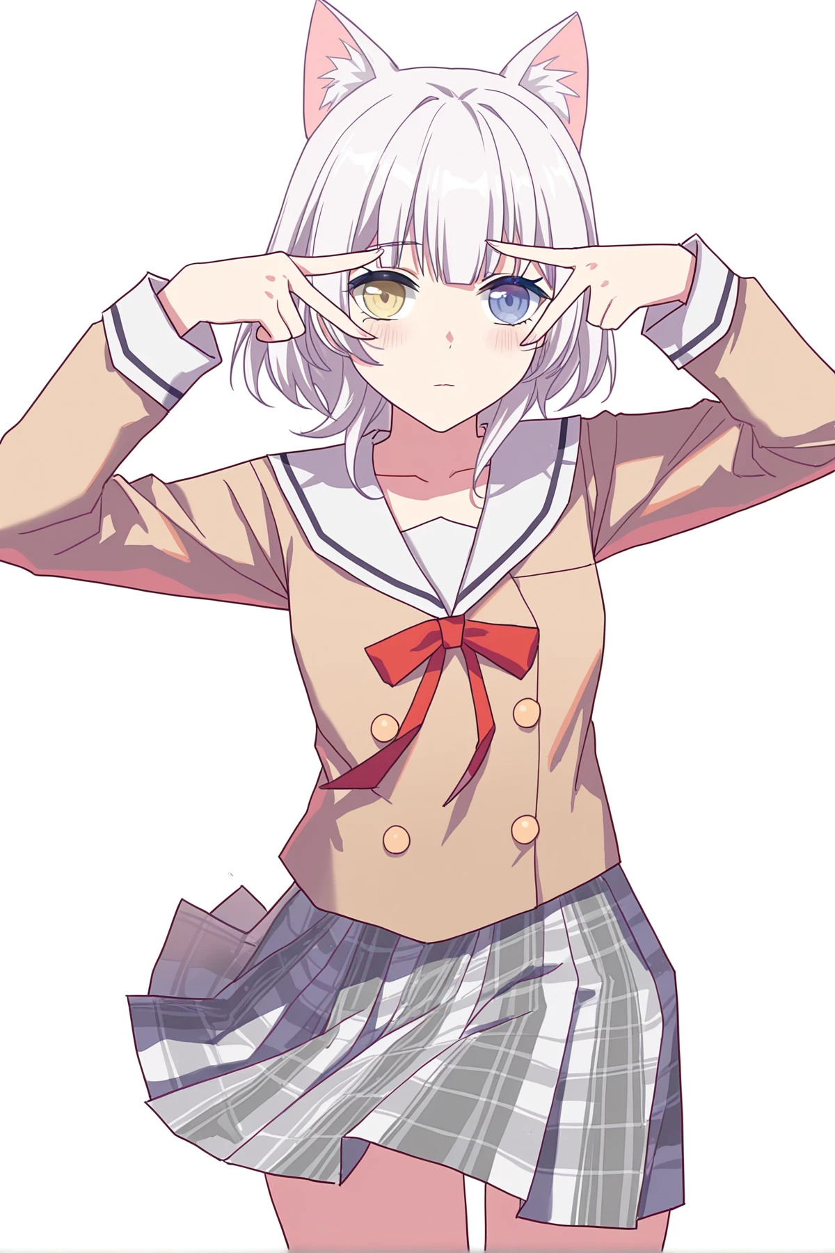 提示词:kaname rana, white hair, short hair, heterochromia, yellow eye, blue eye