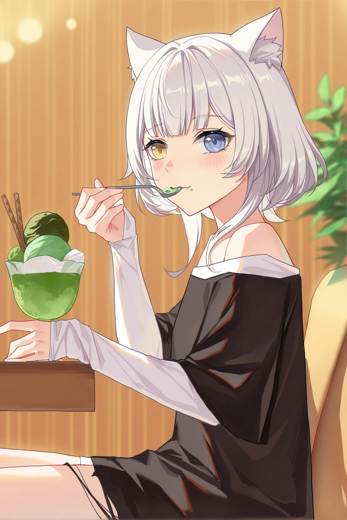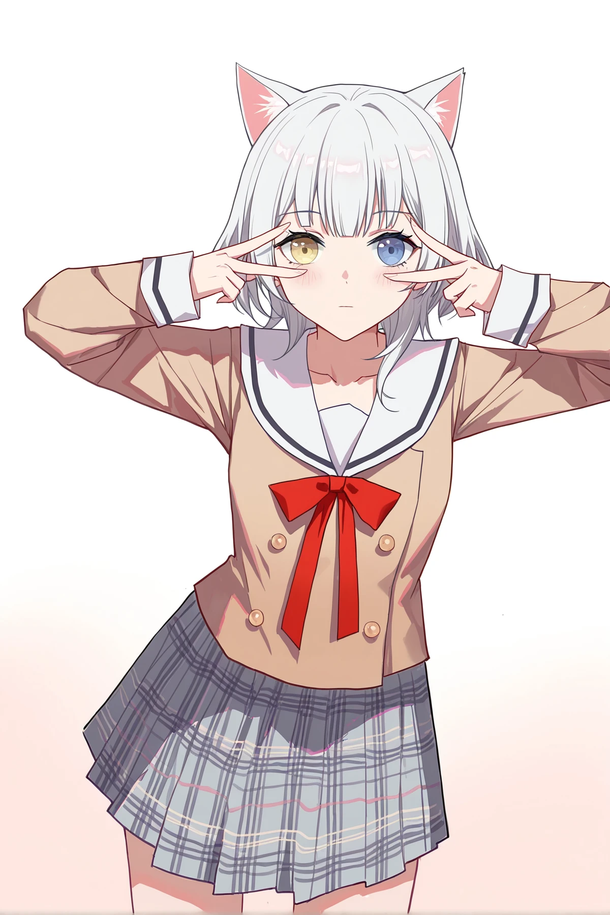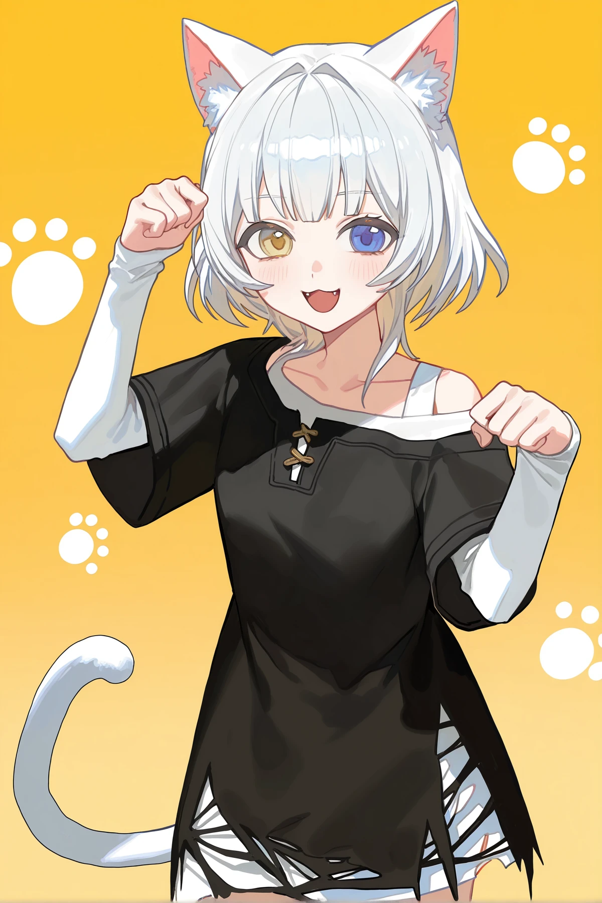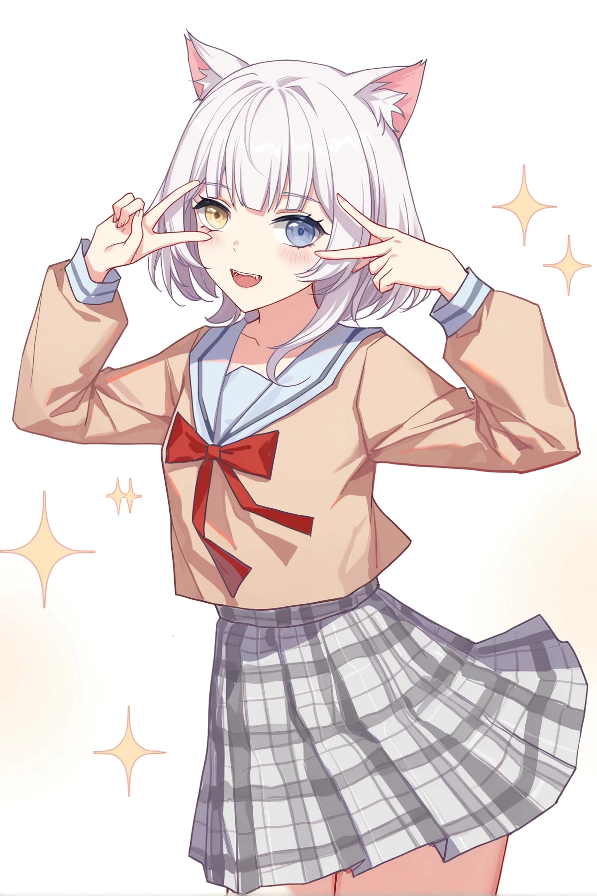 提示词:kaname rana, white hair, short hair, heterochromia, yellow eye, blue eye