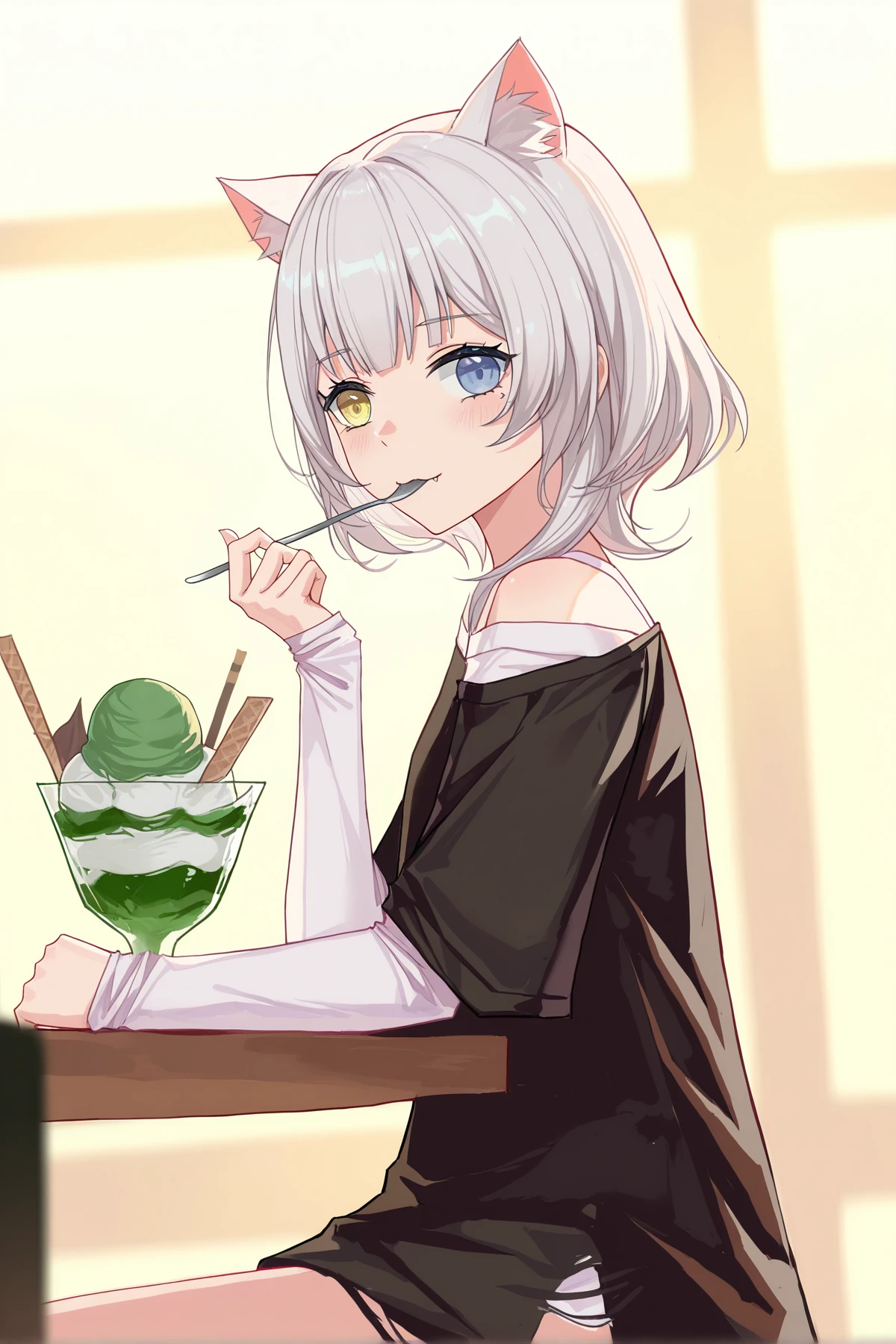 Keywords: kaname raana, white hair, short hair, heterochromia, yellow eye, blue eye