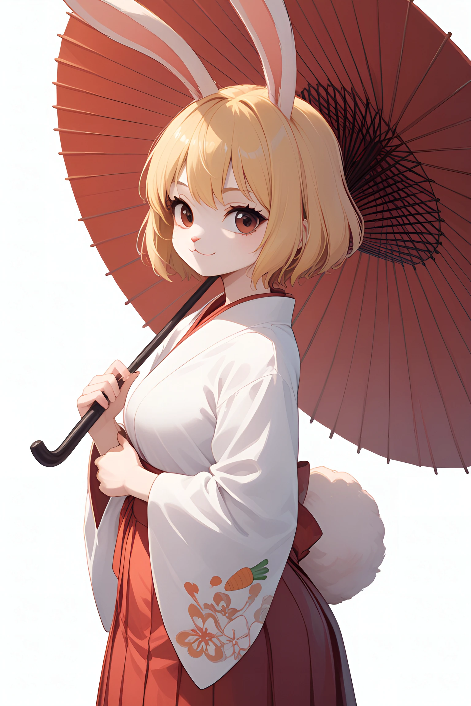 1girl, rabbit girl, solo, rabbit ears, blonde hair, furry female, animal ears, rabbit tail, furry, tail, short hair, animal nose, frills, black eyes, body fur