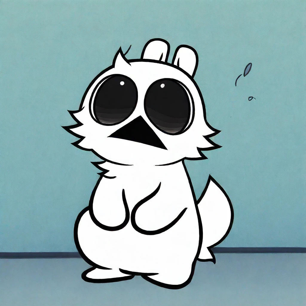 B1p,Rabbit,solo,male,white fur,black eyes,big round eyes,Short ears,tuft face,no nose,simple style,