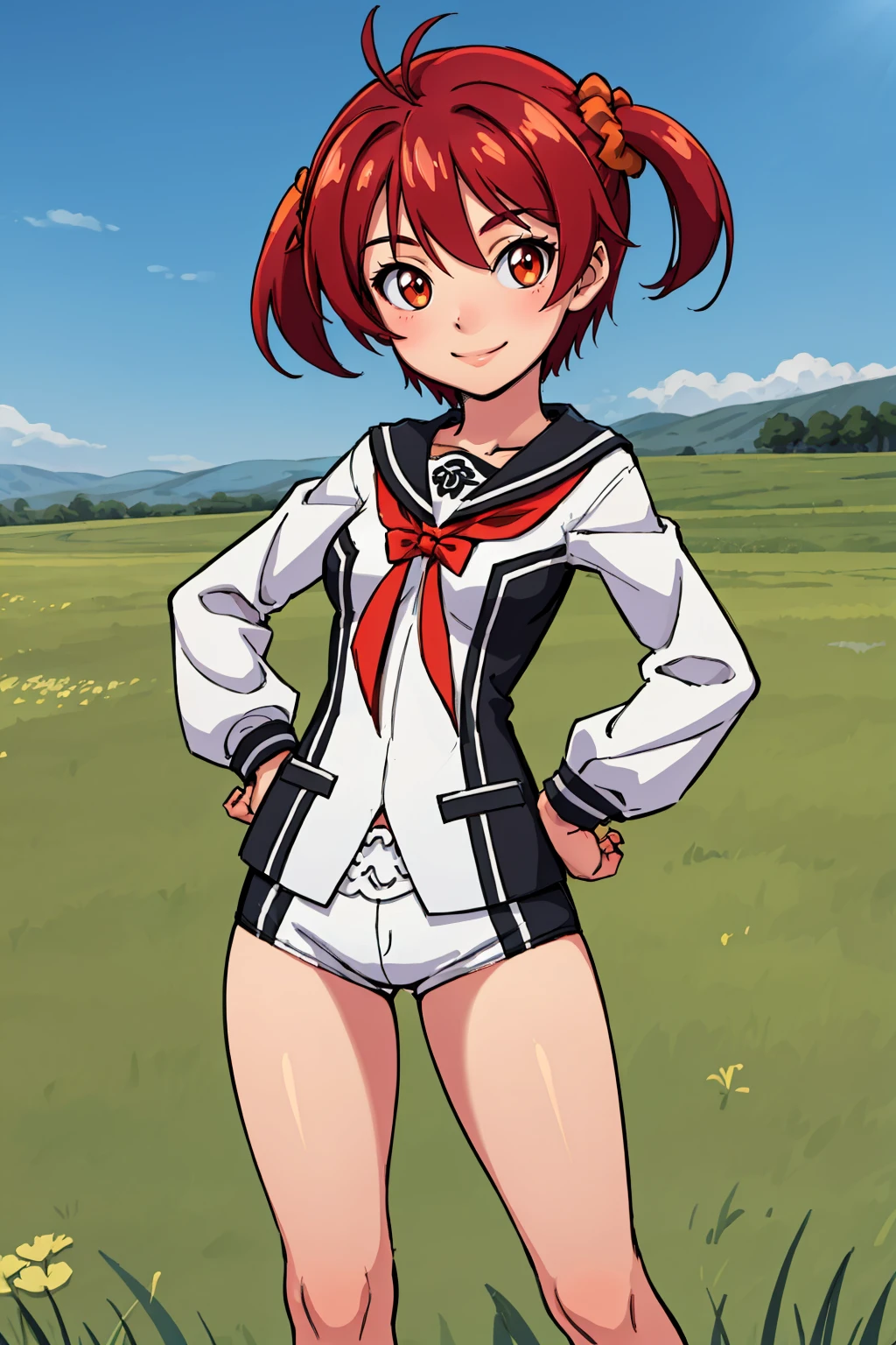 Basic prompts : 1girl, akaneisshiki, brown eyes, red hair, short hair, twintails
