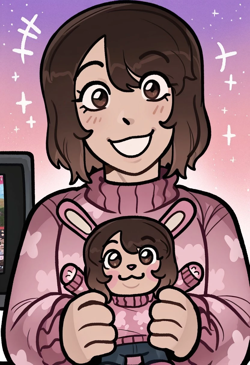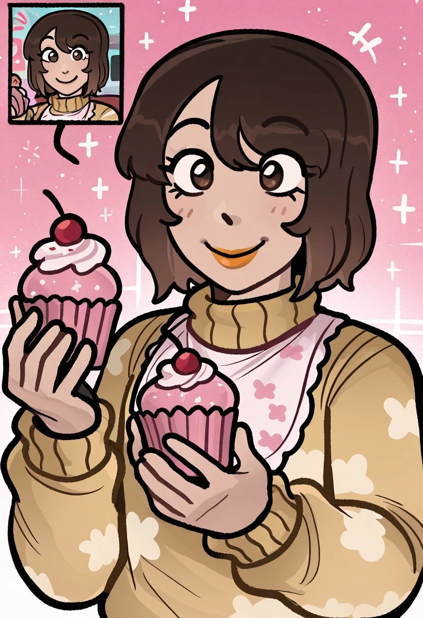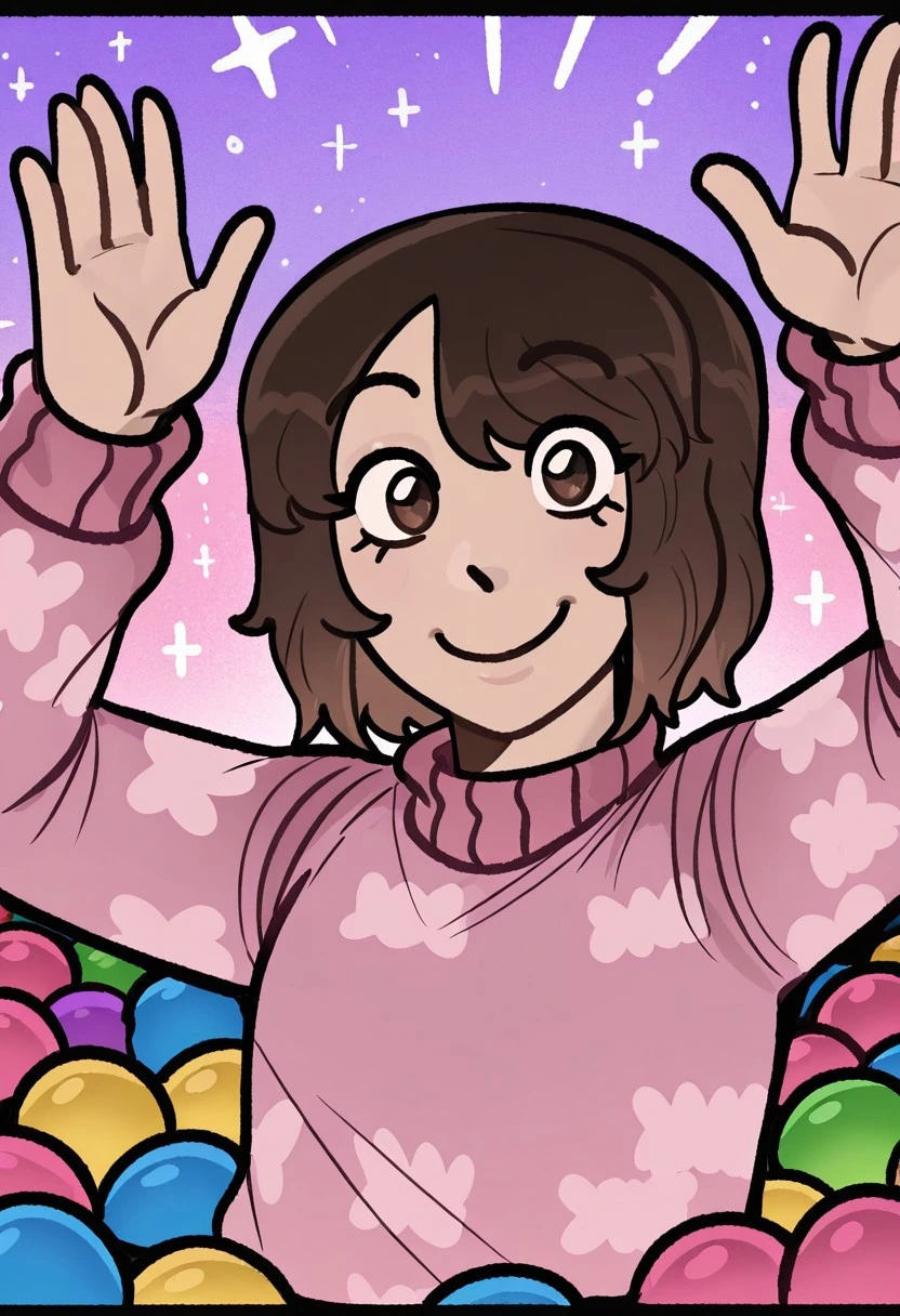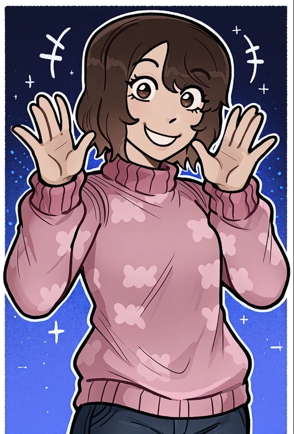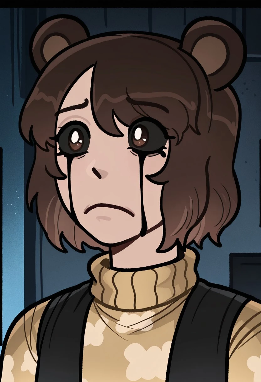 AbbyFNAF, brown hair, 1girl, brown eyes, short hair, pink sweater, turtleneck