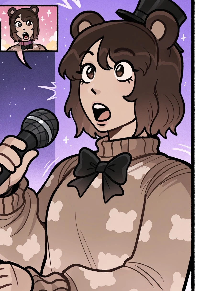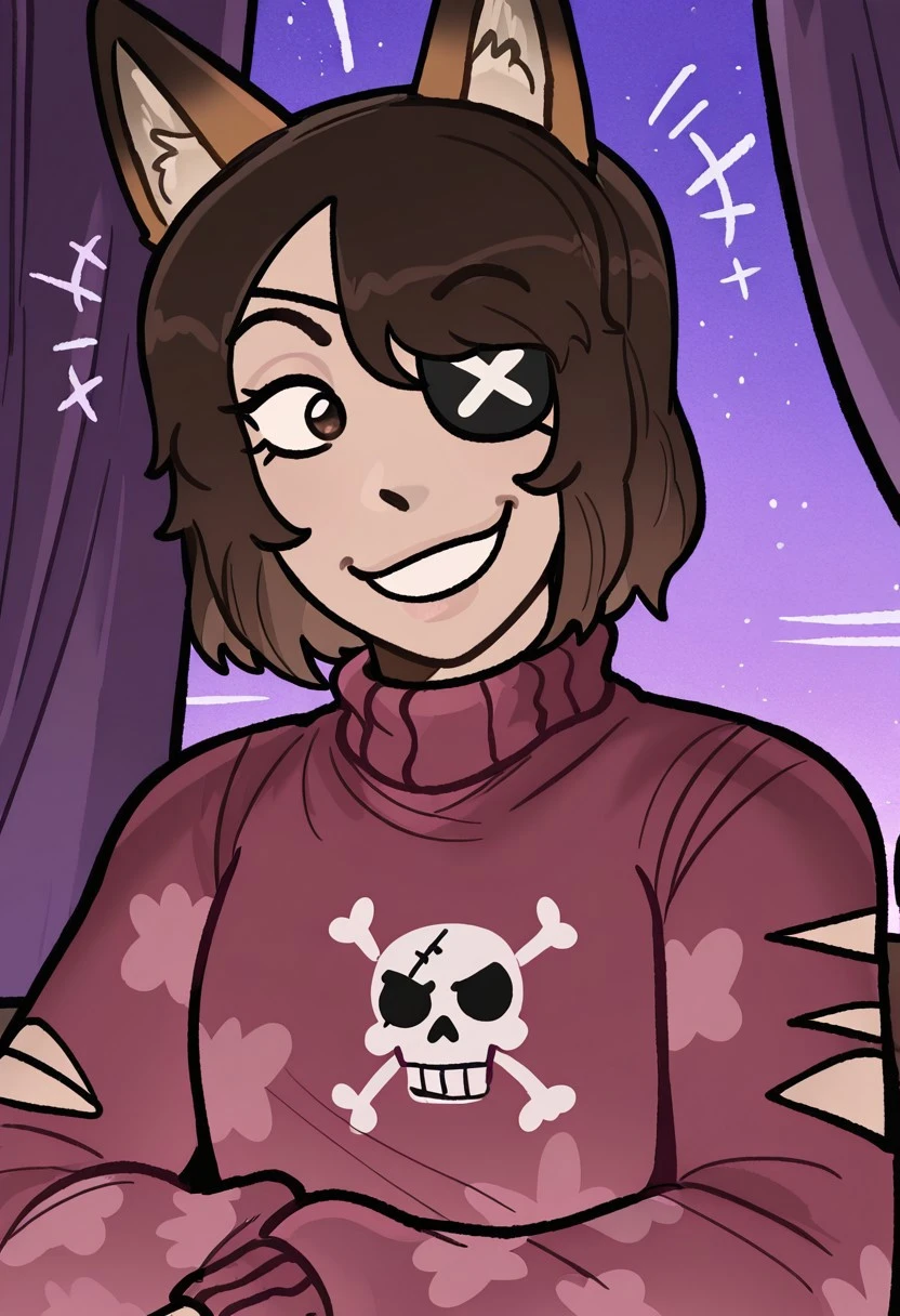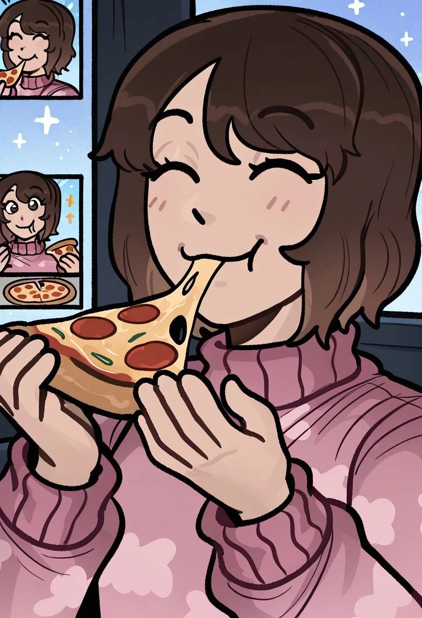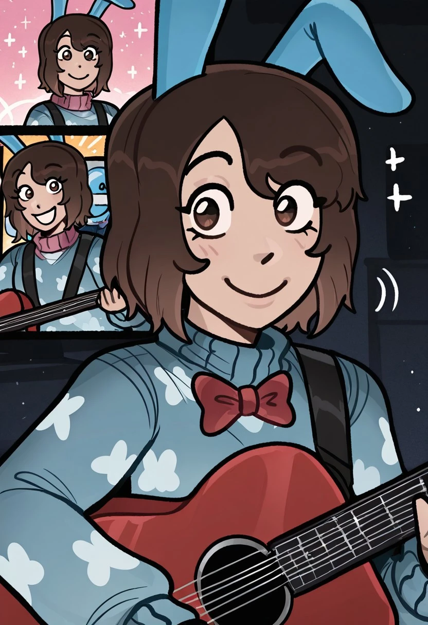 AbbyFNAF, brown hair, 1girl, brown eyes, short hair, pink sweater, turtleneck