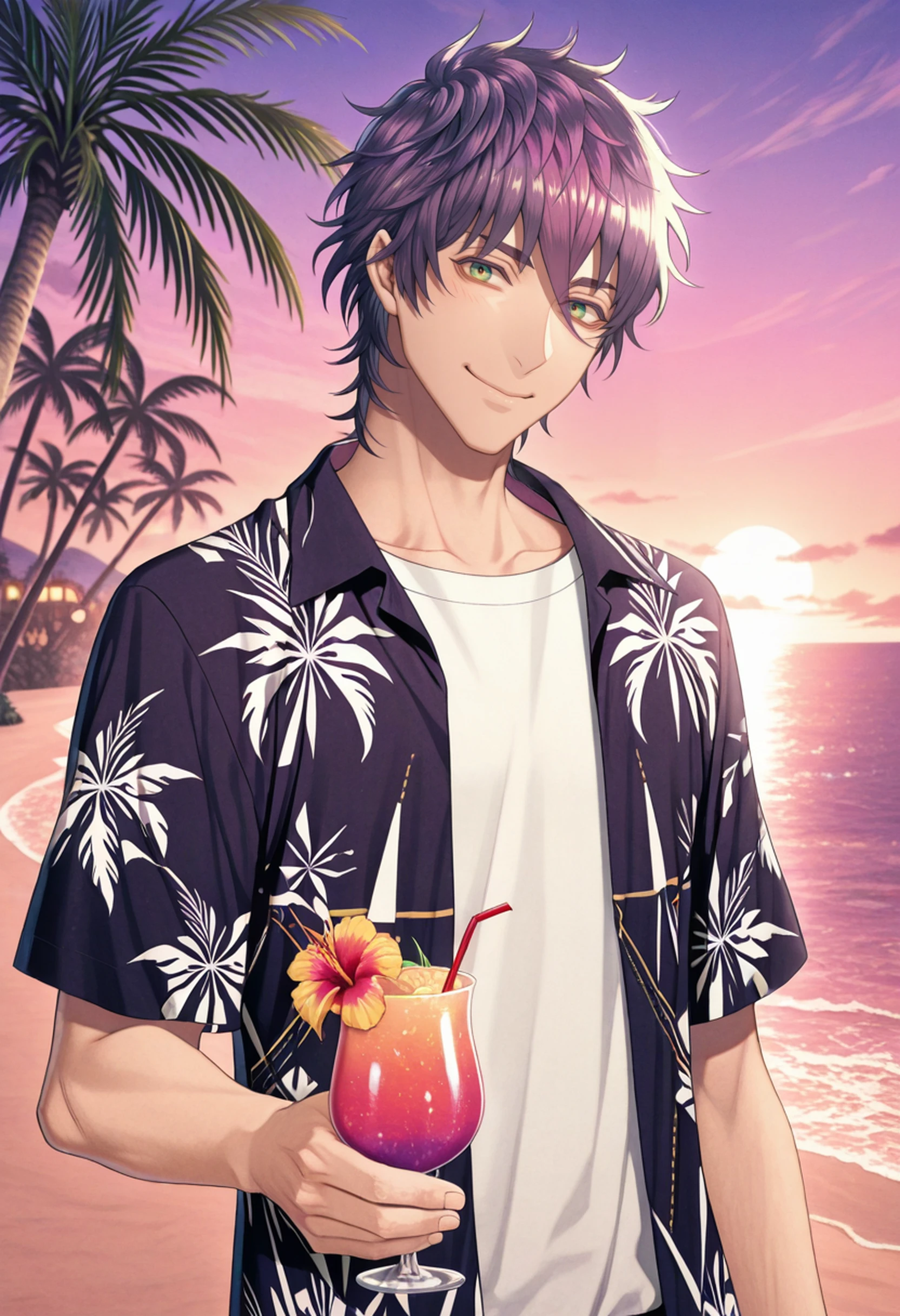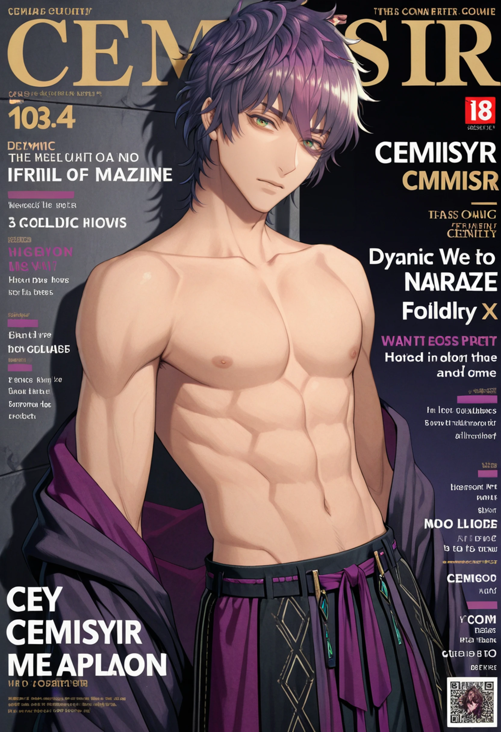 CEMisyr, 1boy, male focus, green eyes, short hair, purple hair