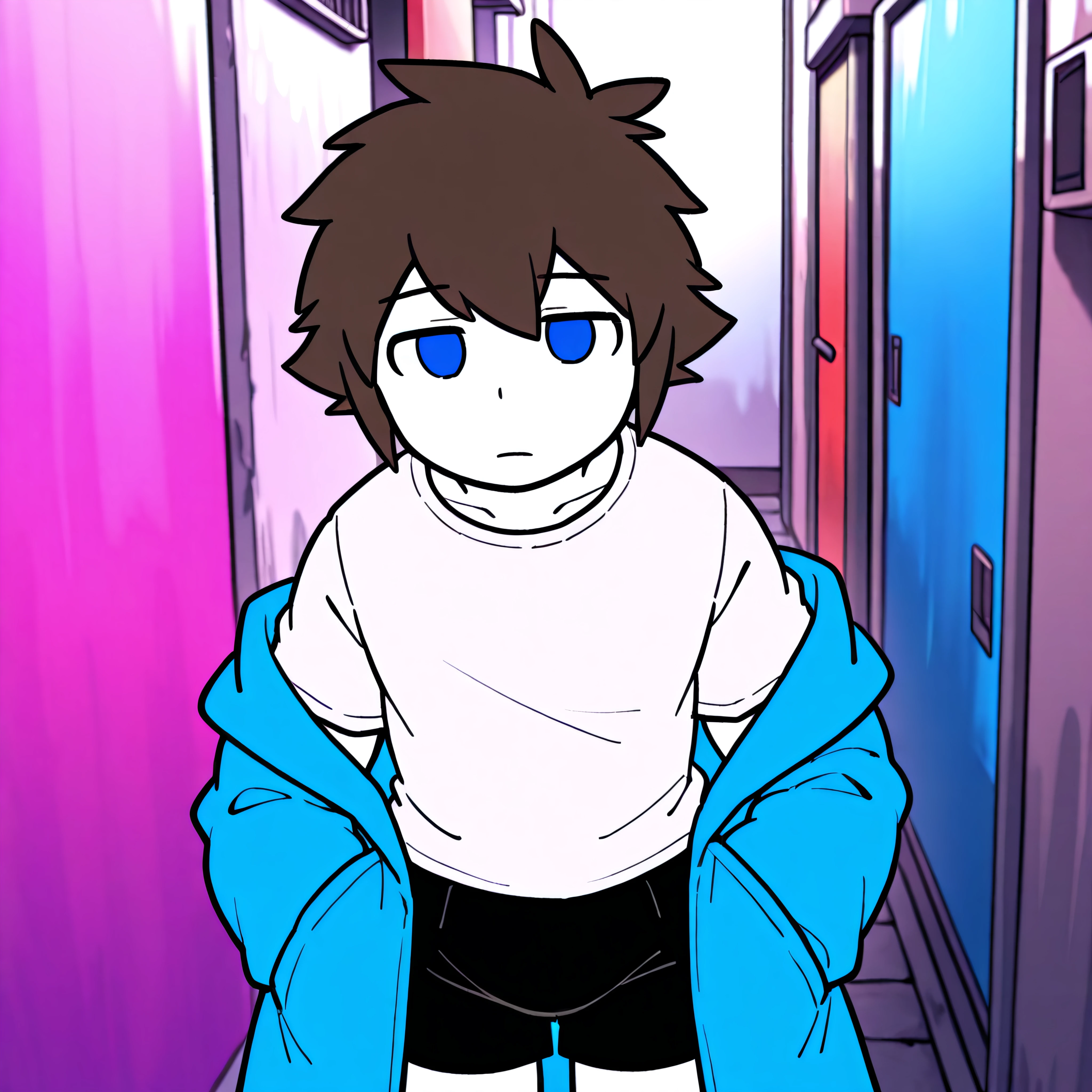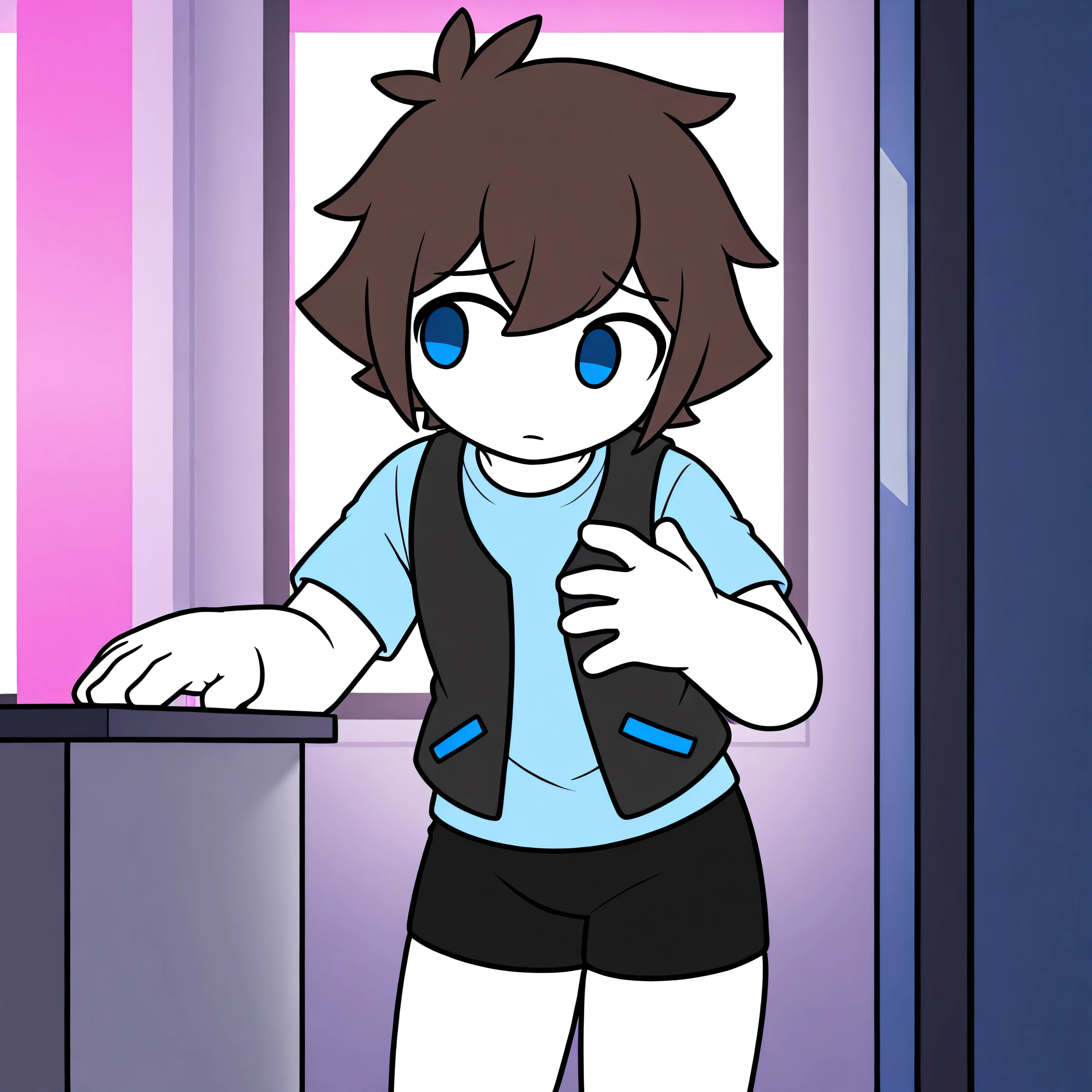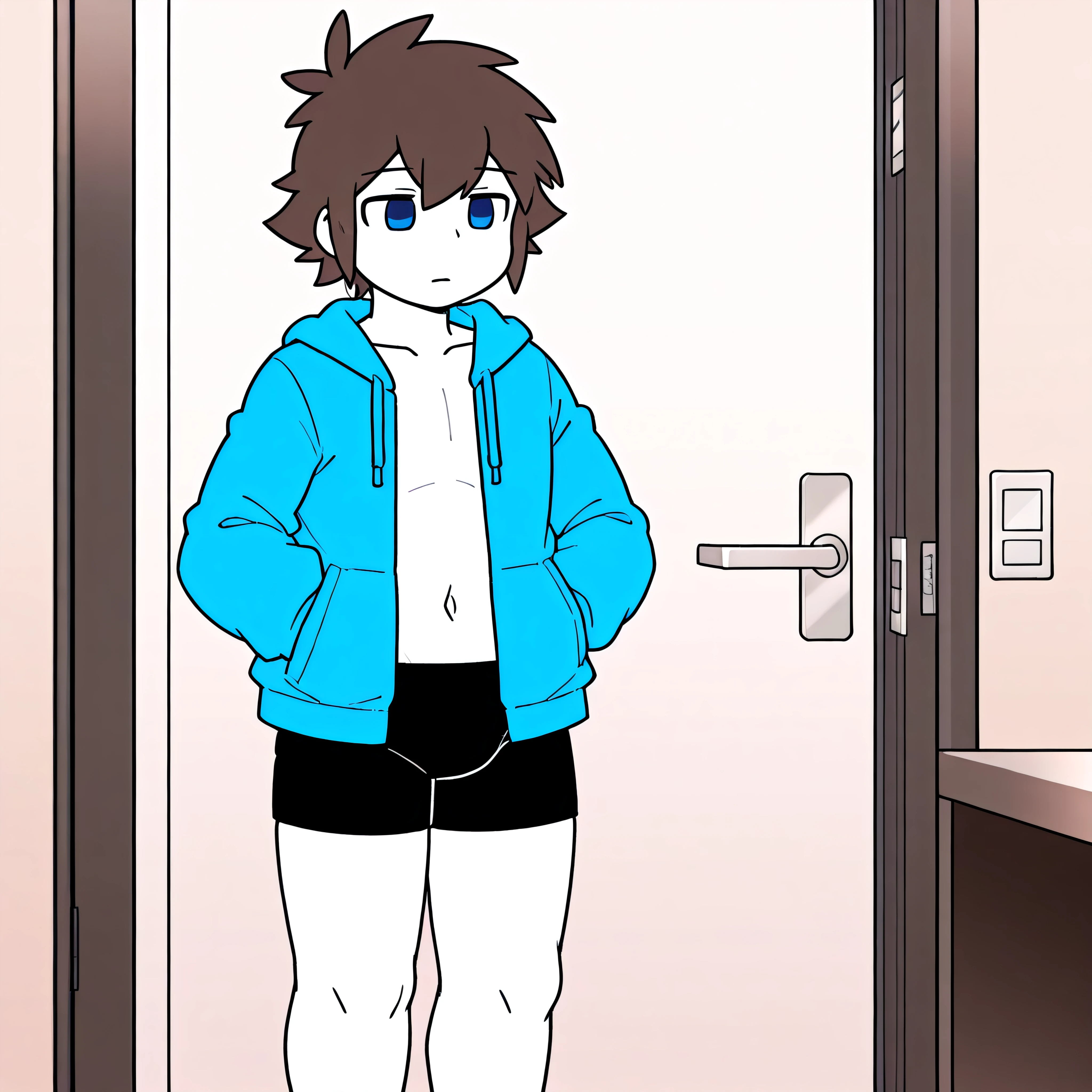 Co1in, blue eyes, brown hair, white skin, black boxers, human,1boy, solo