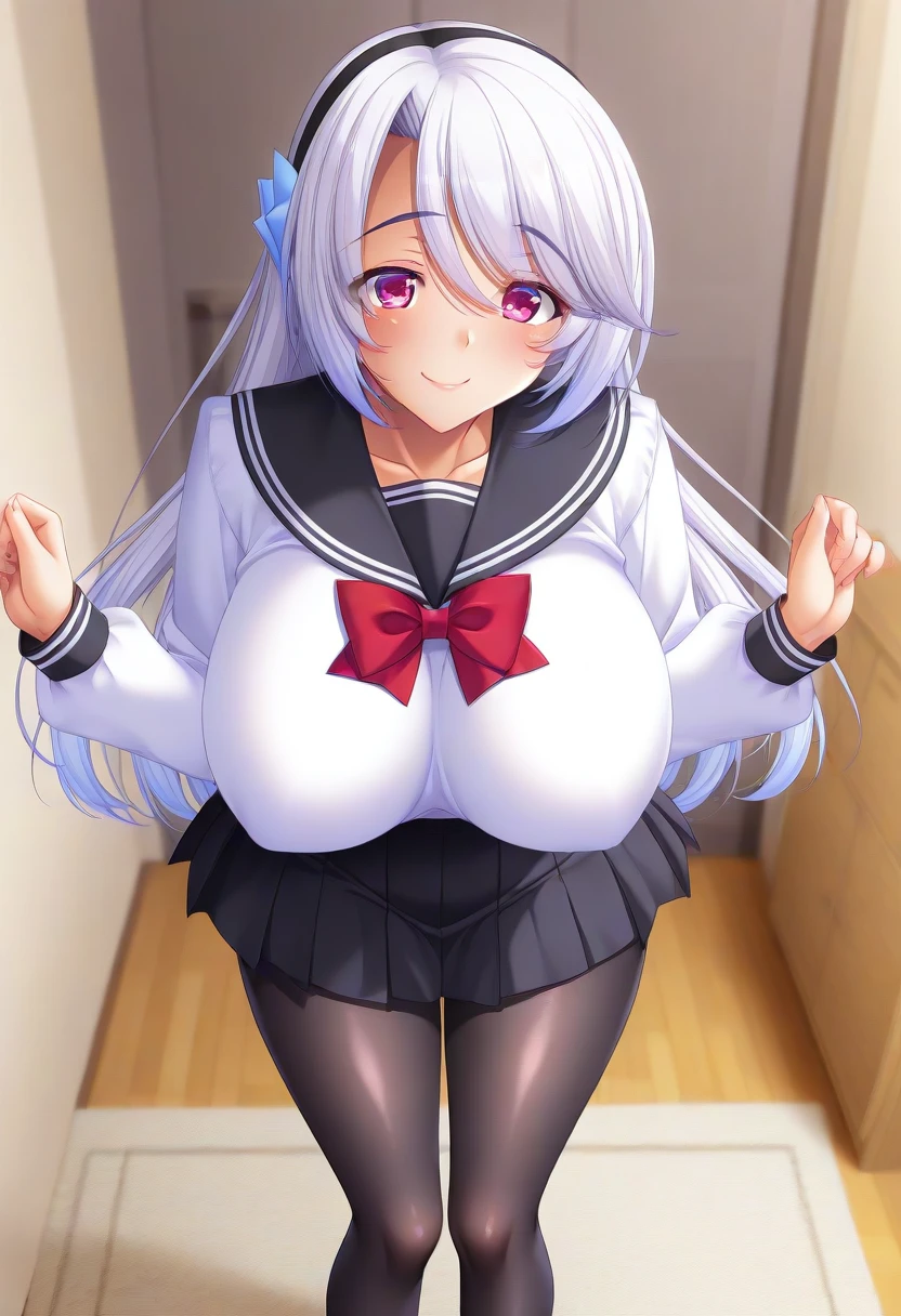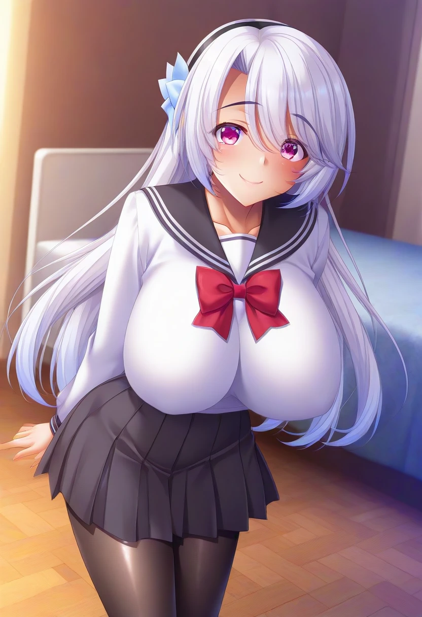 Recommend Prompt:Nagisa Watase, purple eyes, white hair, long hair, hairband, hair ornament,
