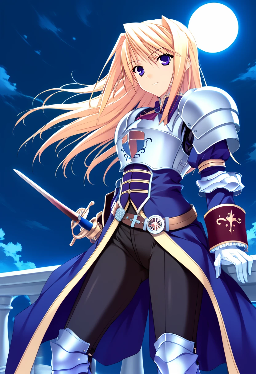 otft1, armored dress, pauldrons, White gloves, armor, breastplate, black pants, red ascot, brooch, gem