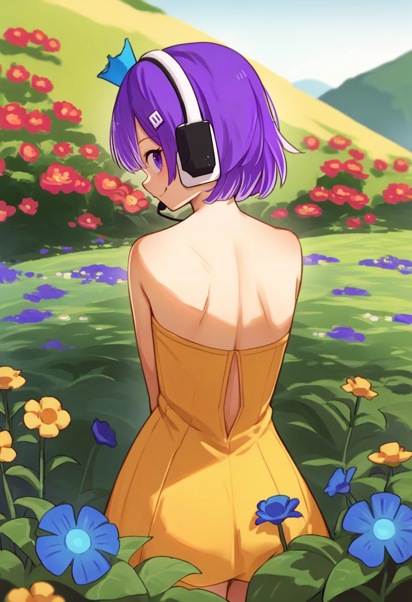 Trigger + Appearance: twitch-chan, purple hair, hair ornament, purple eyes