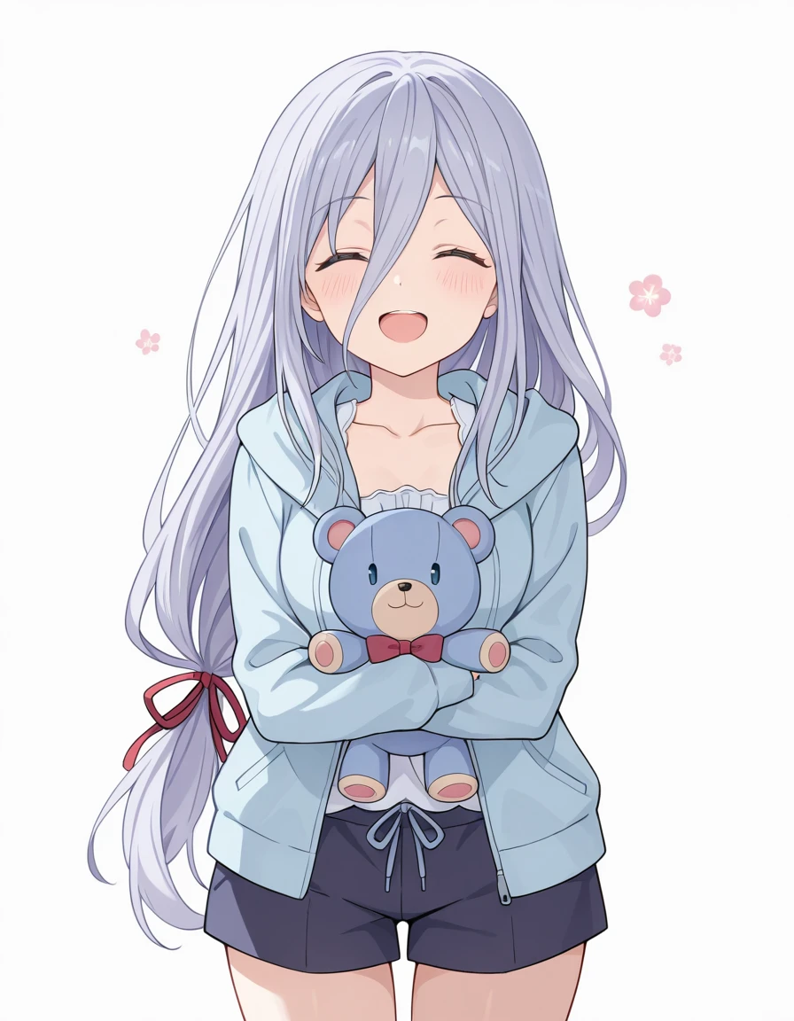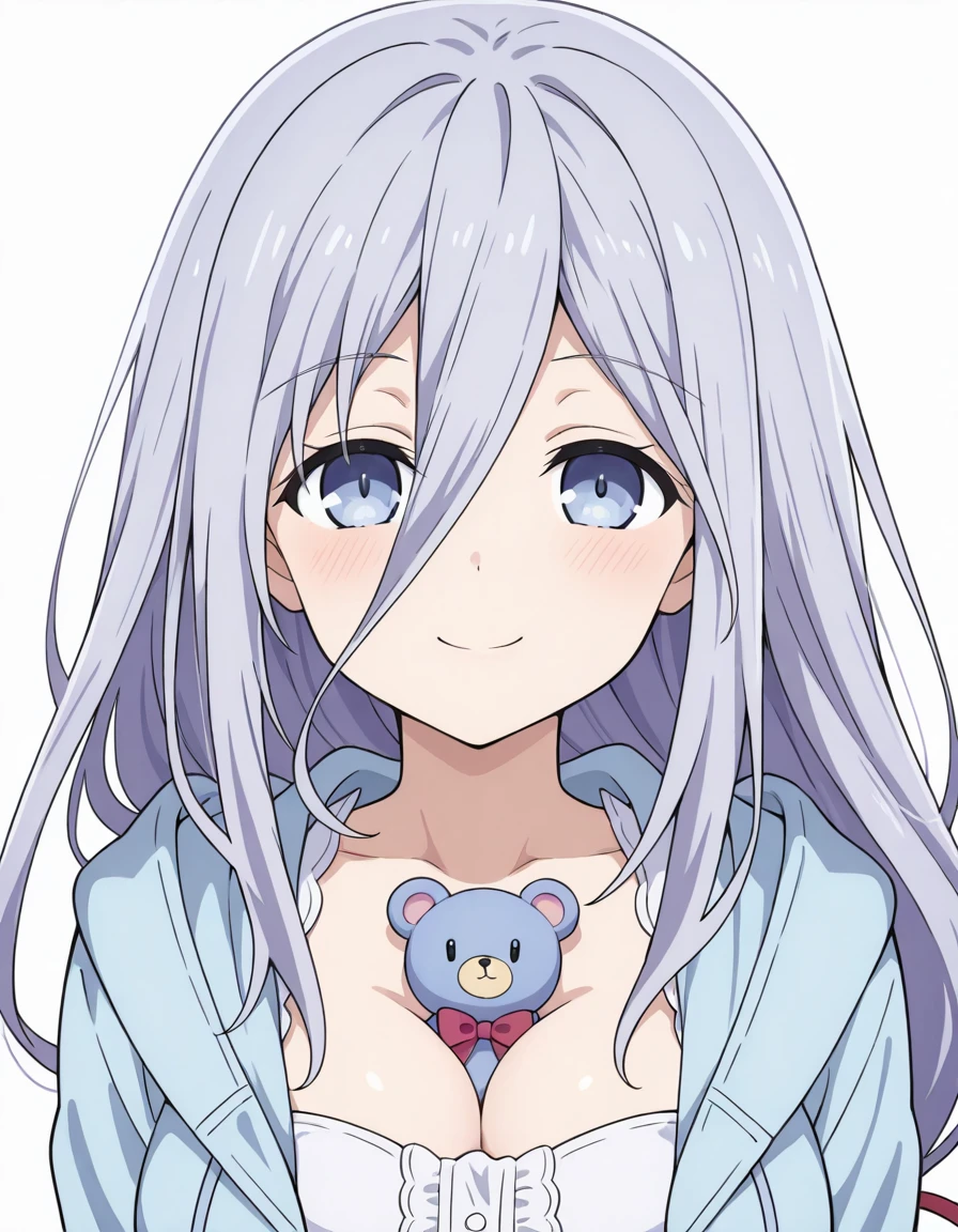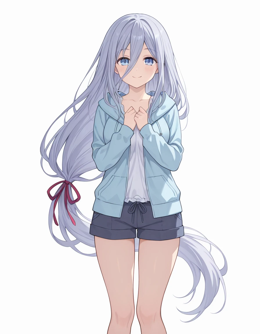 Takamiya Mio, grey hair, blue eyes, hair between eyes, low-tied long hair, very long hairspirit: