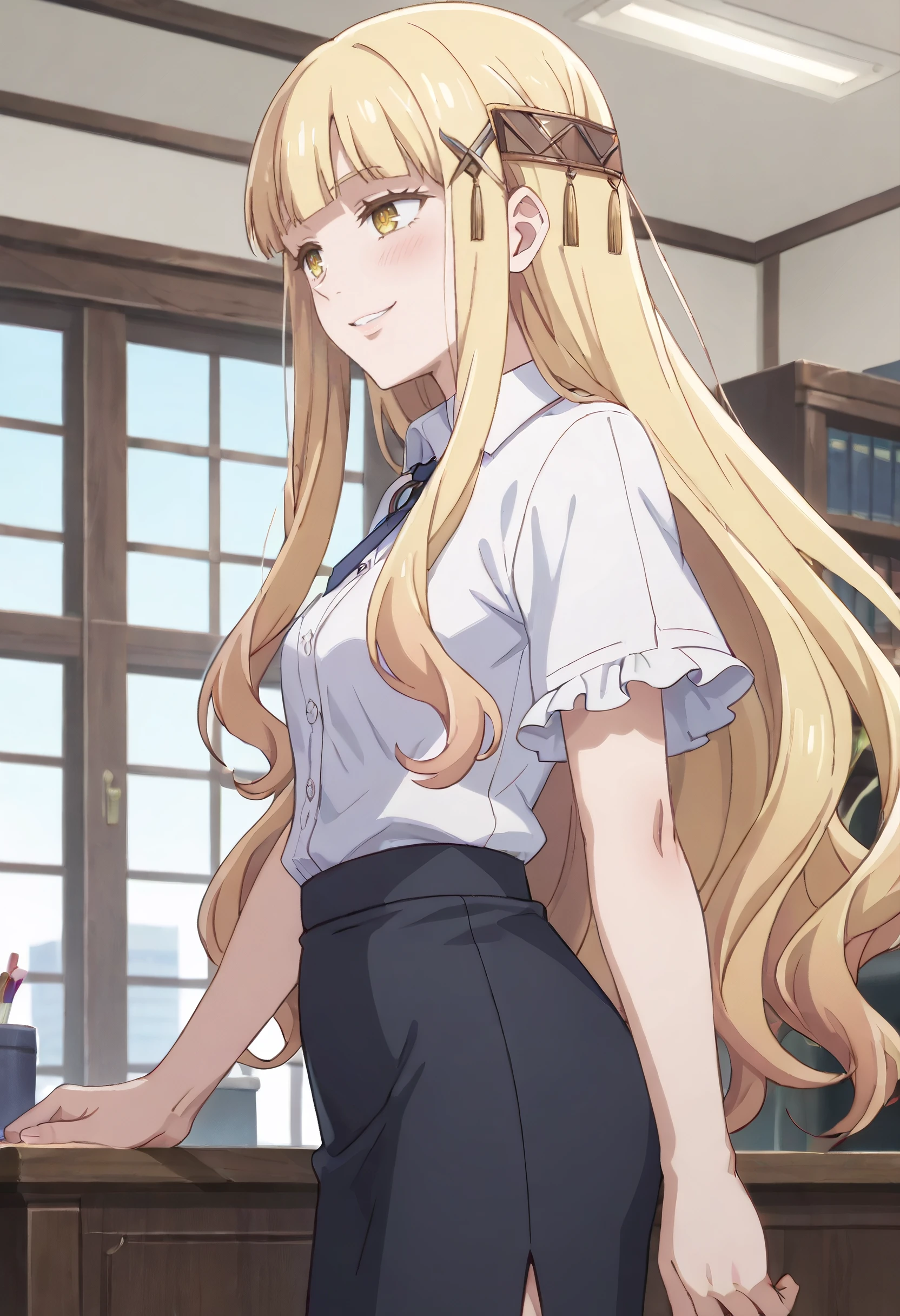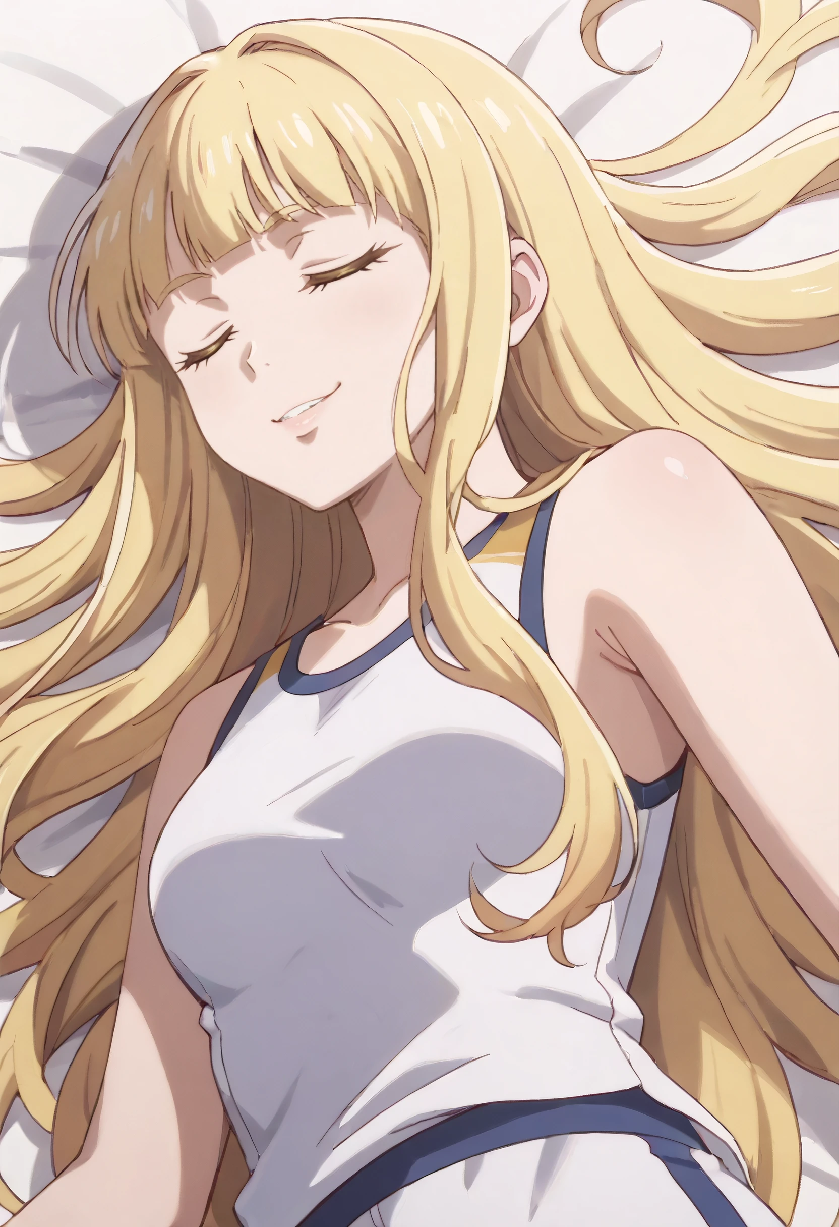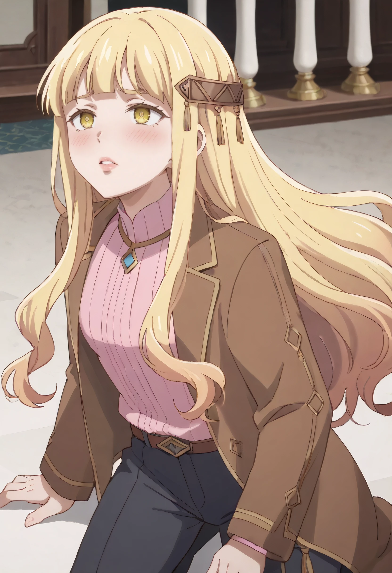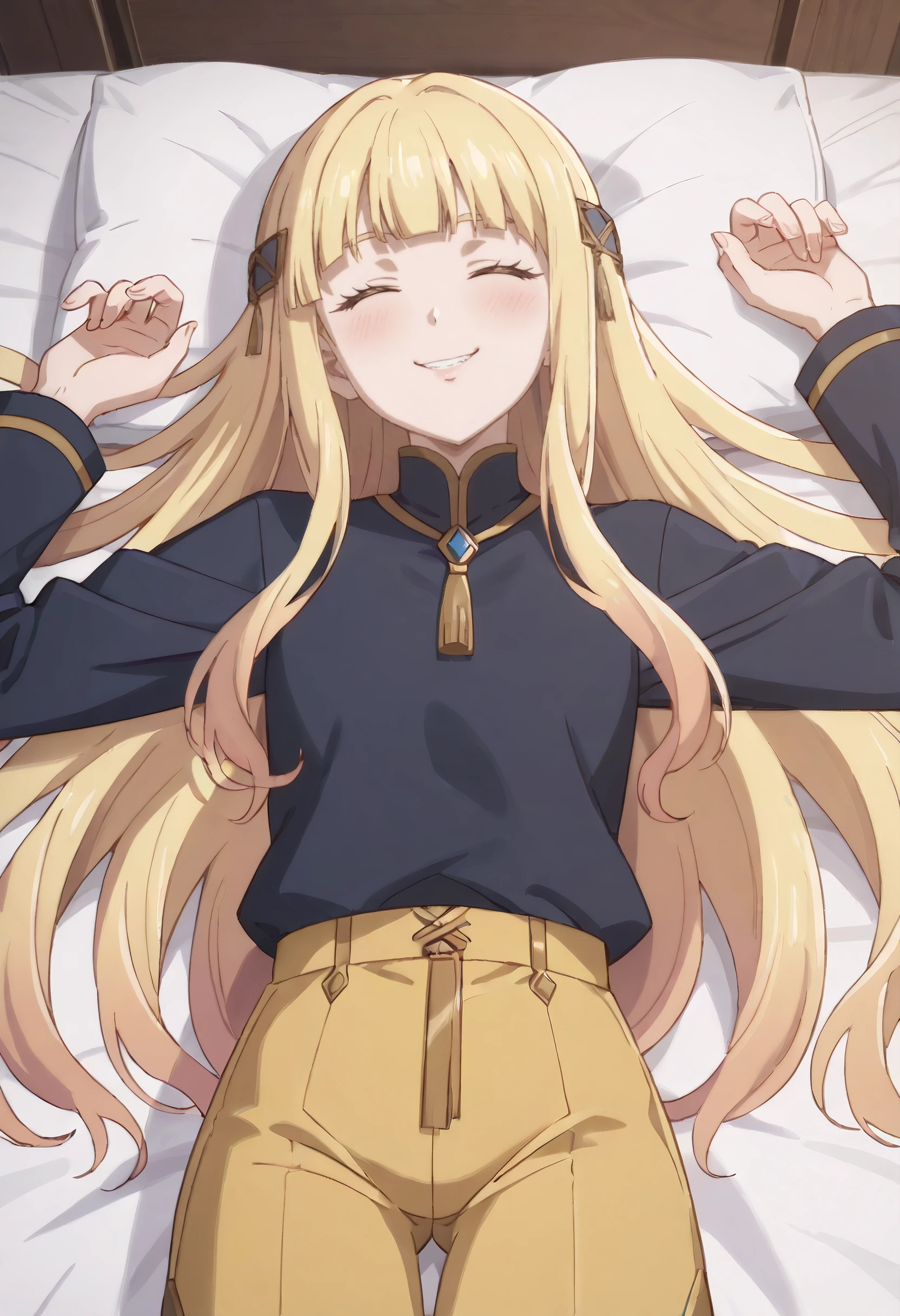 IMMSoalina, long hair, blonde hair, yellow eyes, blunt bangs, sidelocks, very long hair,