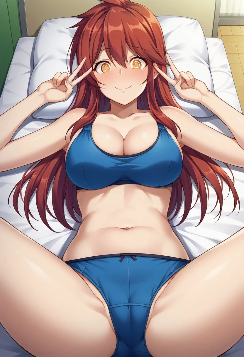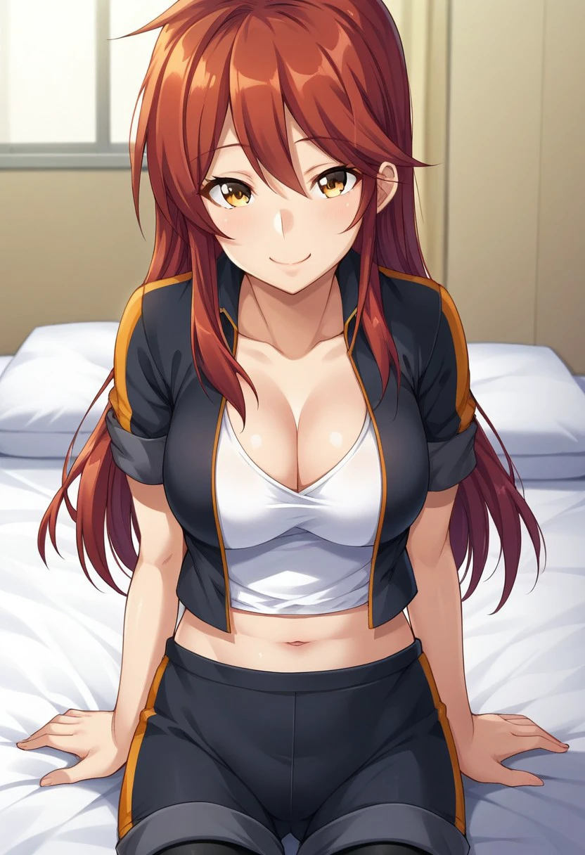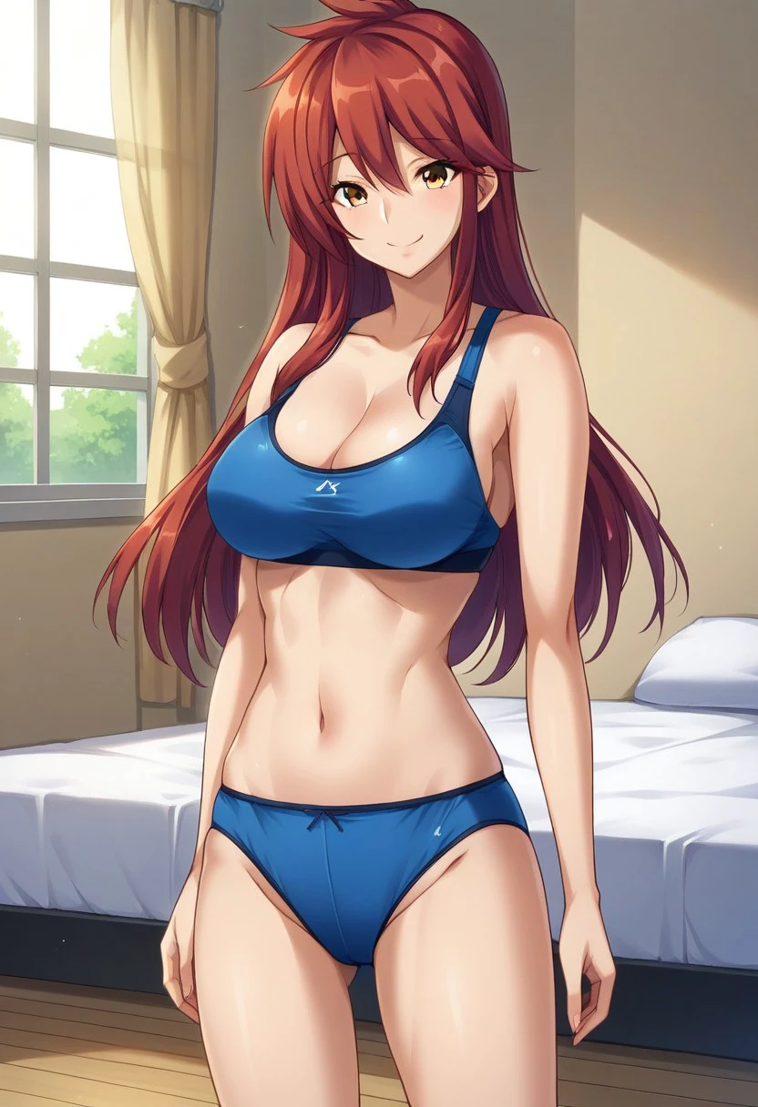 Nanami Nanako,Red Hair,Long hair,V Bangs, Sidehair,Amber eyes,medium breasts