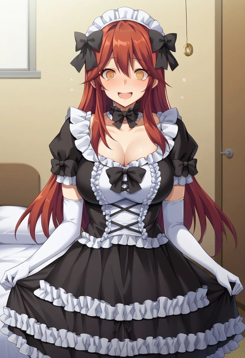 4) gloves,maid headdress,maid,elbow gloves,white gloves,bow,frills,dress,black and white dress,black bow,frilled dress,detached collar,black bow, big bow on back, black thighhighs