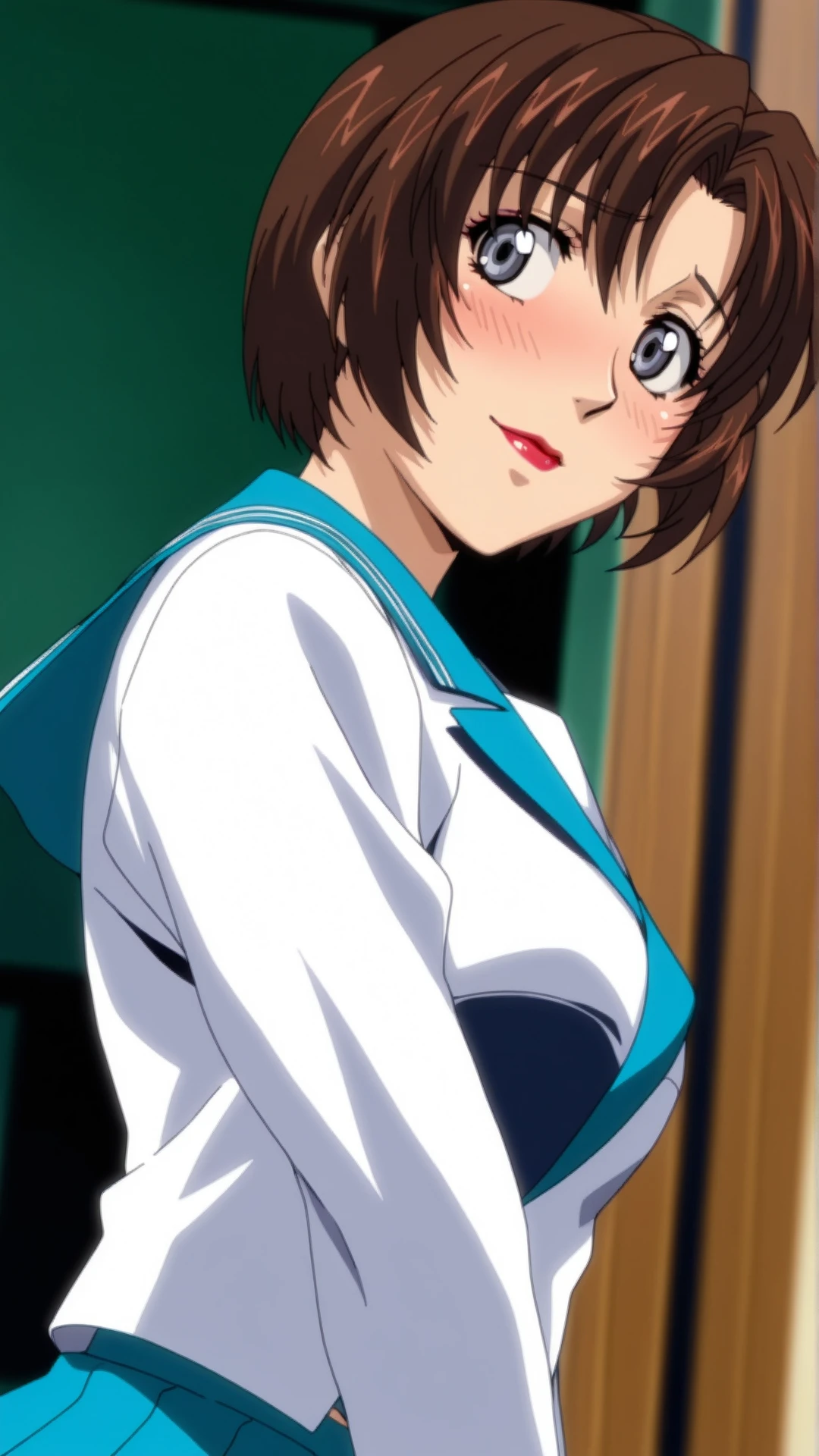eri_kagurazaka\(full metal panic!\),brown hair, short hair, grey eyes,