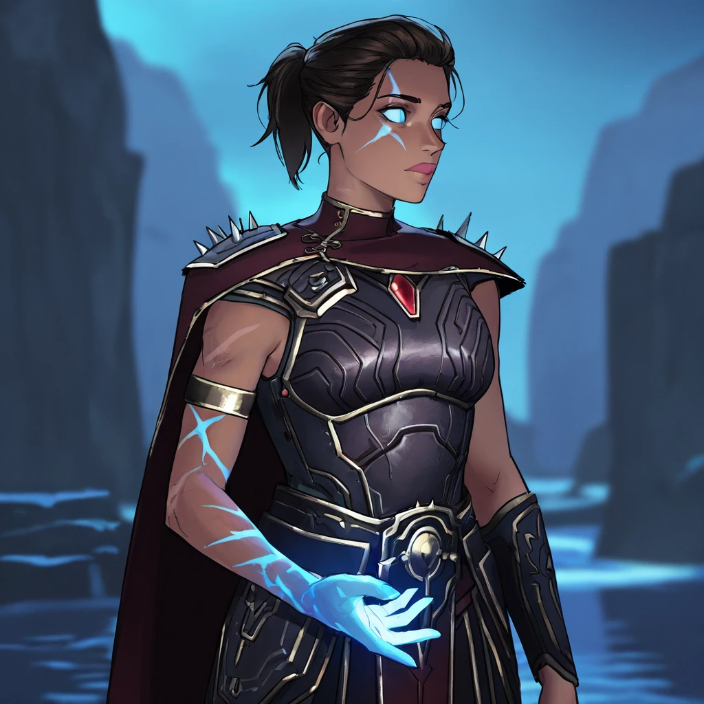 (glowing scar:1.2), blue glow