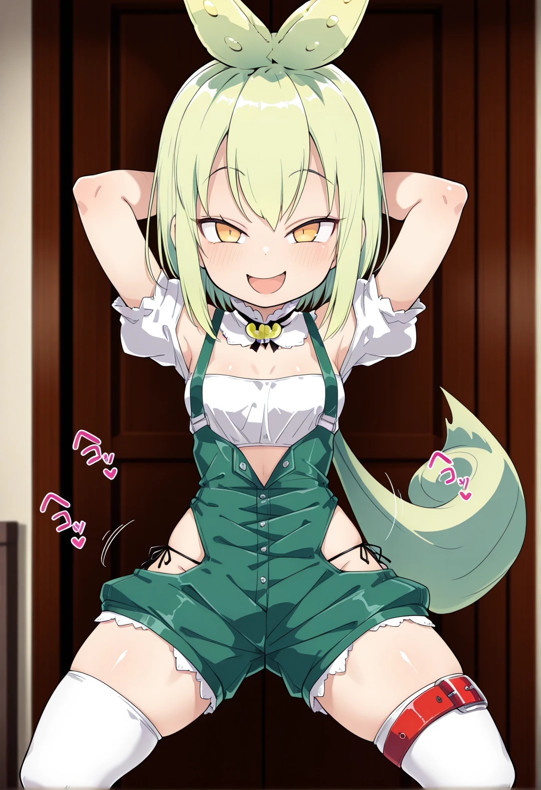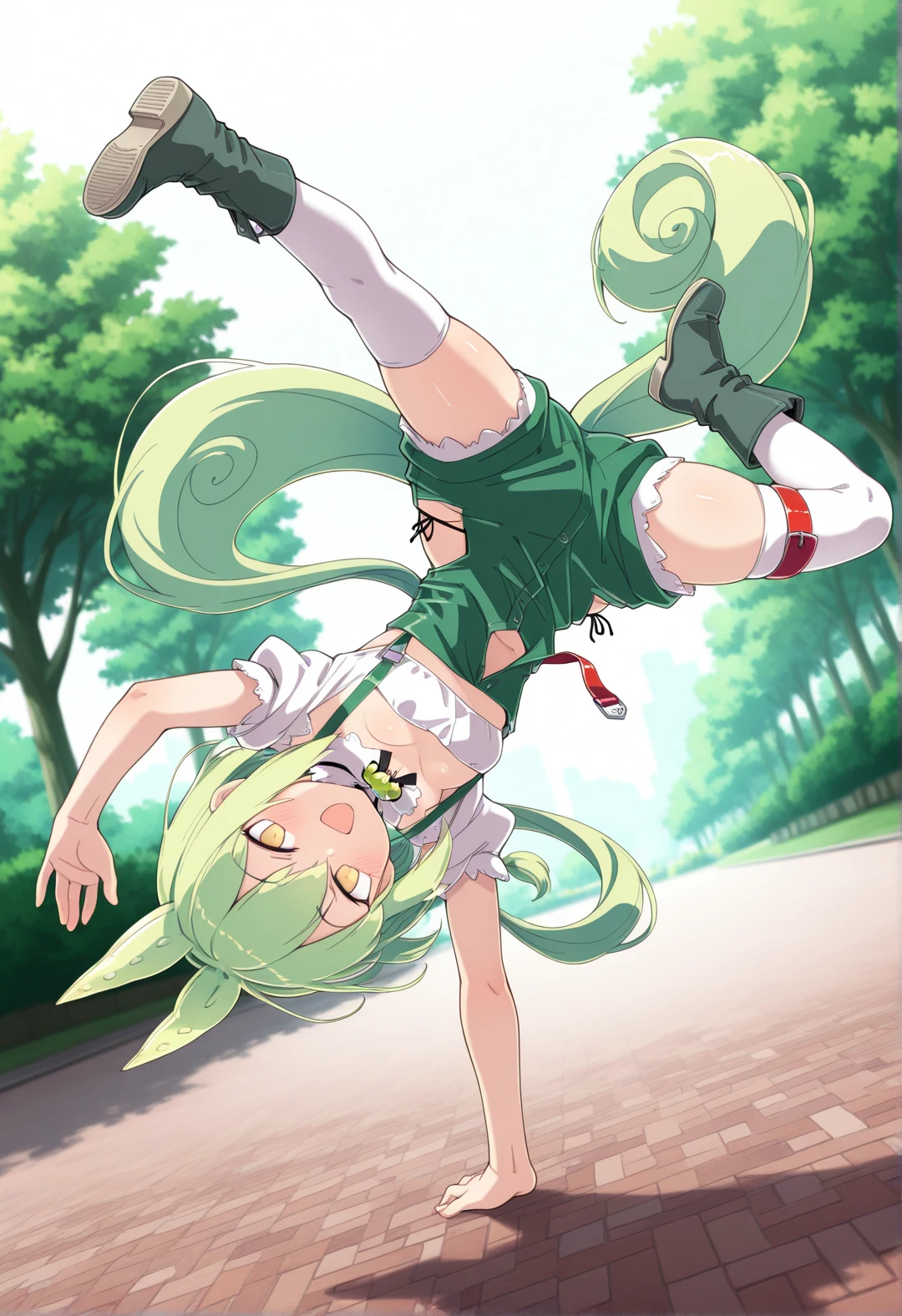 MesugakiZundamon, yellow eyes, tsurime, very long hair, low ponytail, Clothes: