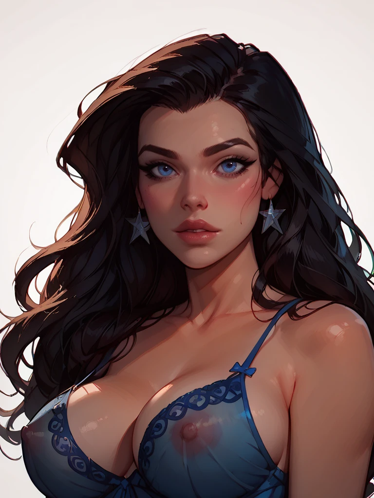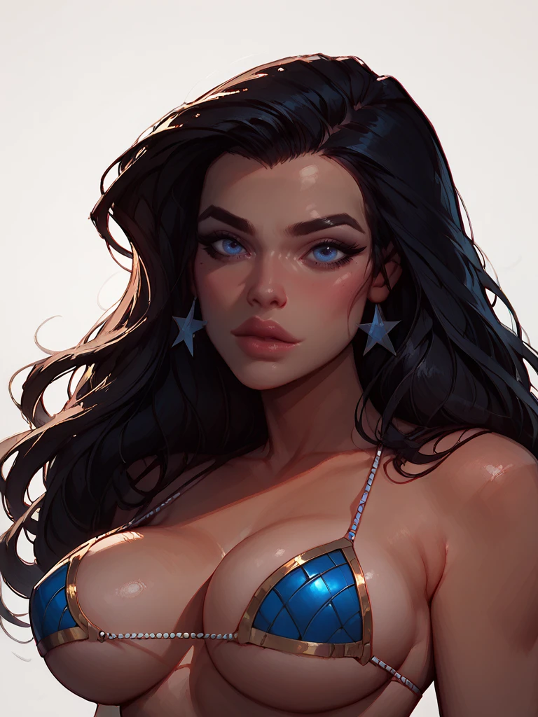 Good Prompts: WonderWoman, blue eyes, black hair, long hair,