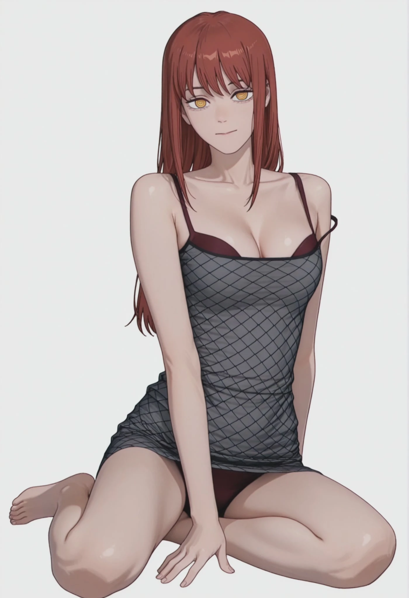 bjdarkdressvisiblebra, black dress, spaghetti strap, fishnet dress, taut dress, black bra, lingerie