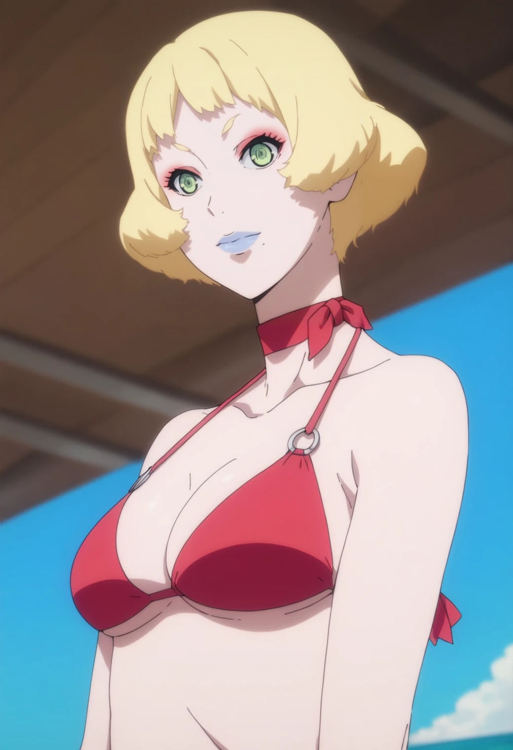 chiaki, strapped dress, waitress, glasses, choker, hat, apron
