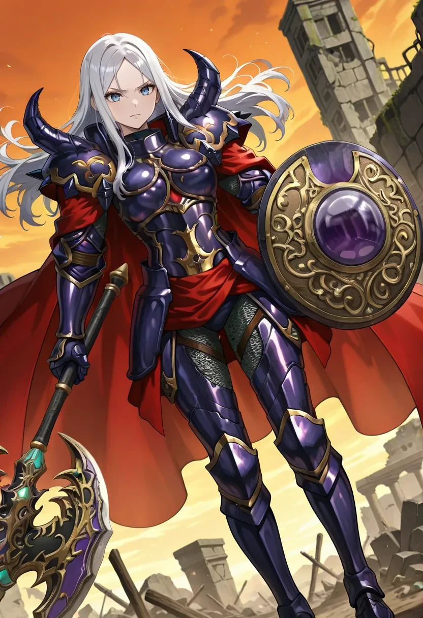 rs3archfiendsrelic, purple armor, full armor, gauntlets, pauldrons, red sash, red cape, armored boots