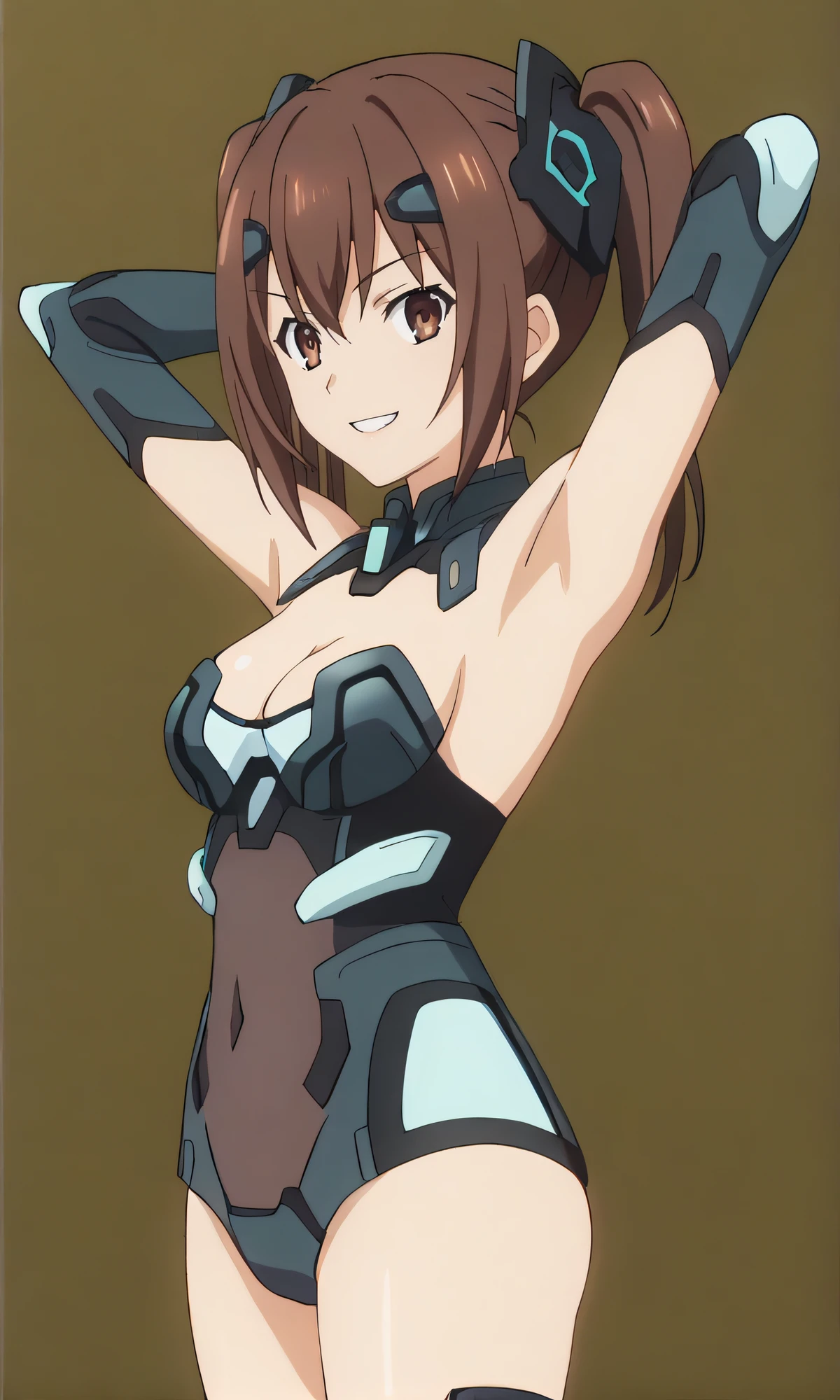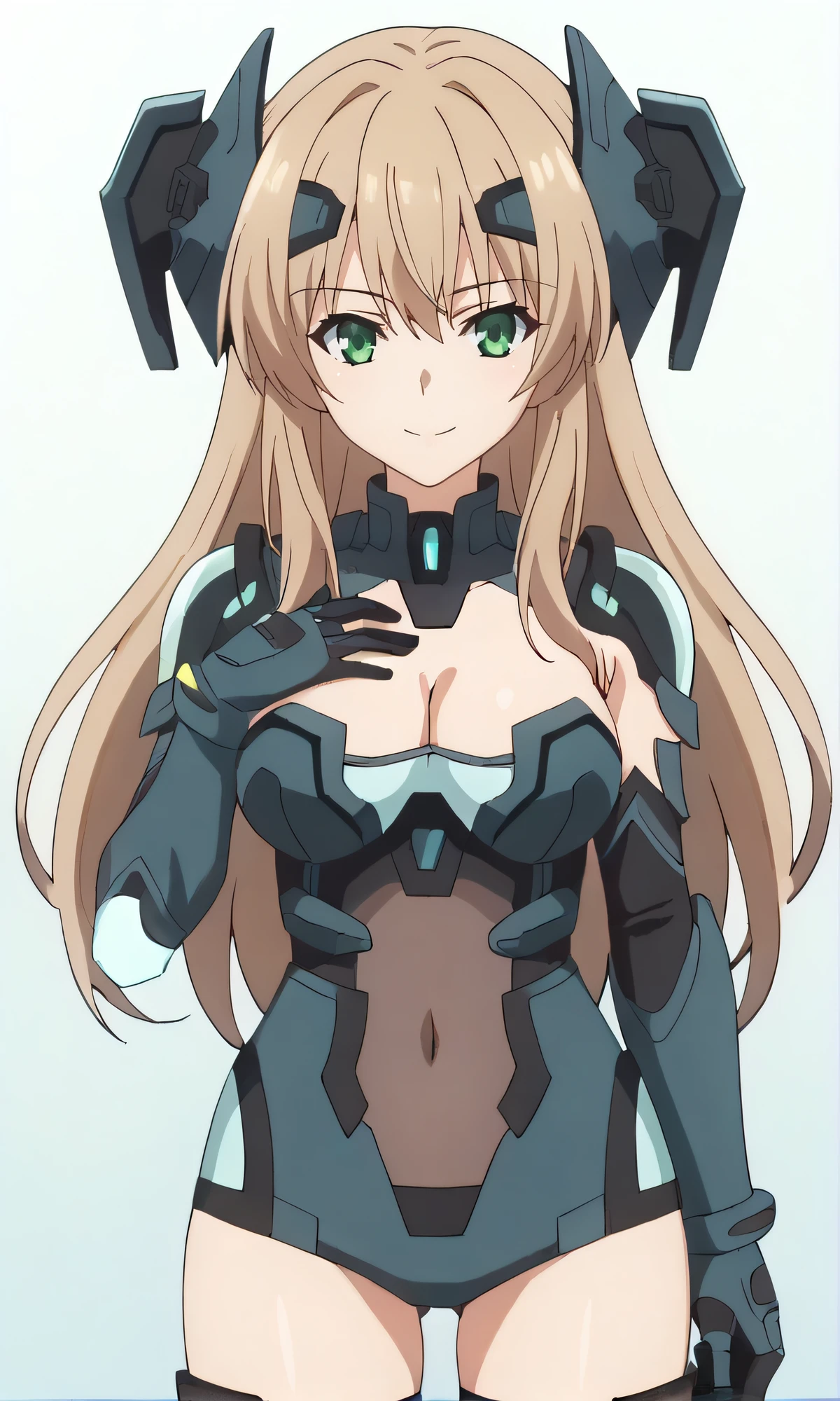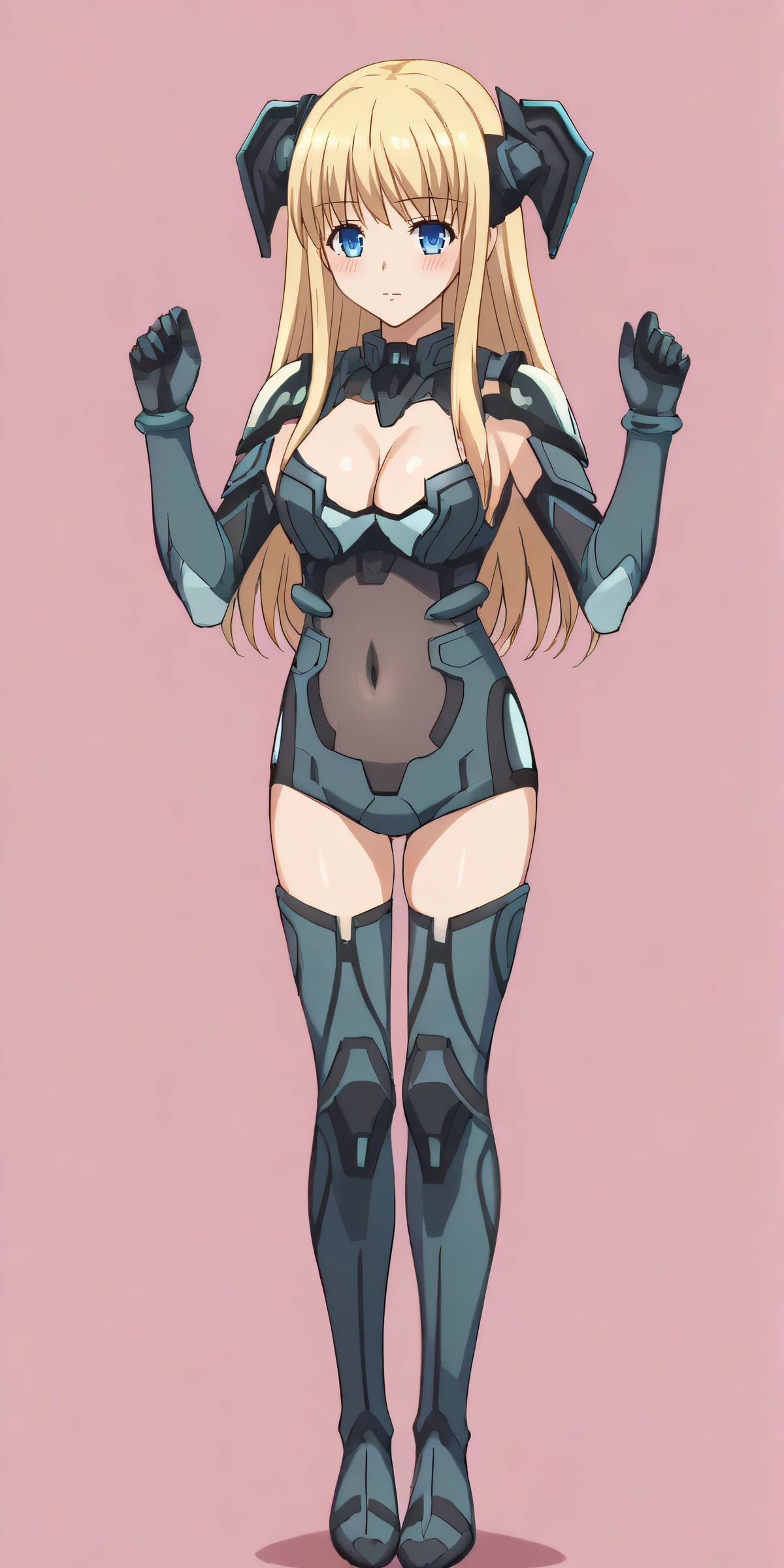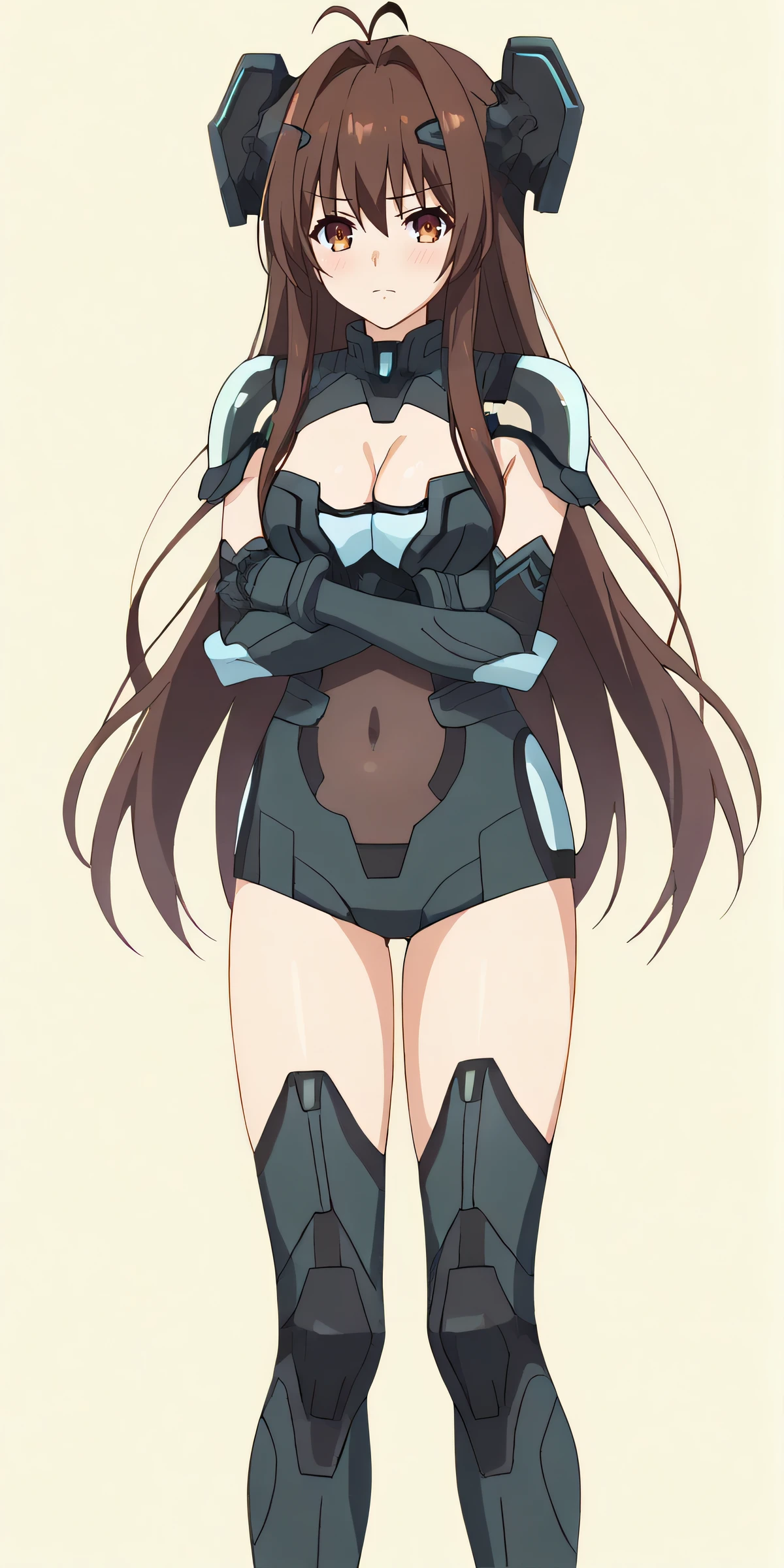 astsuit, cleavage, headgear, elbow gloves, covered navel, dark armor, thigh boots