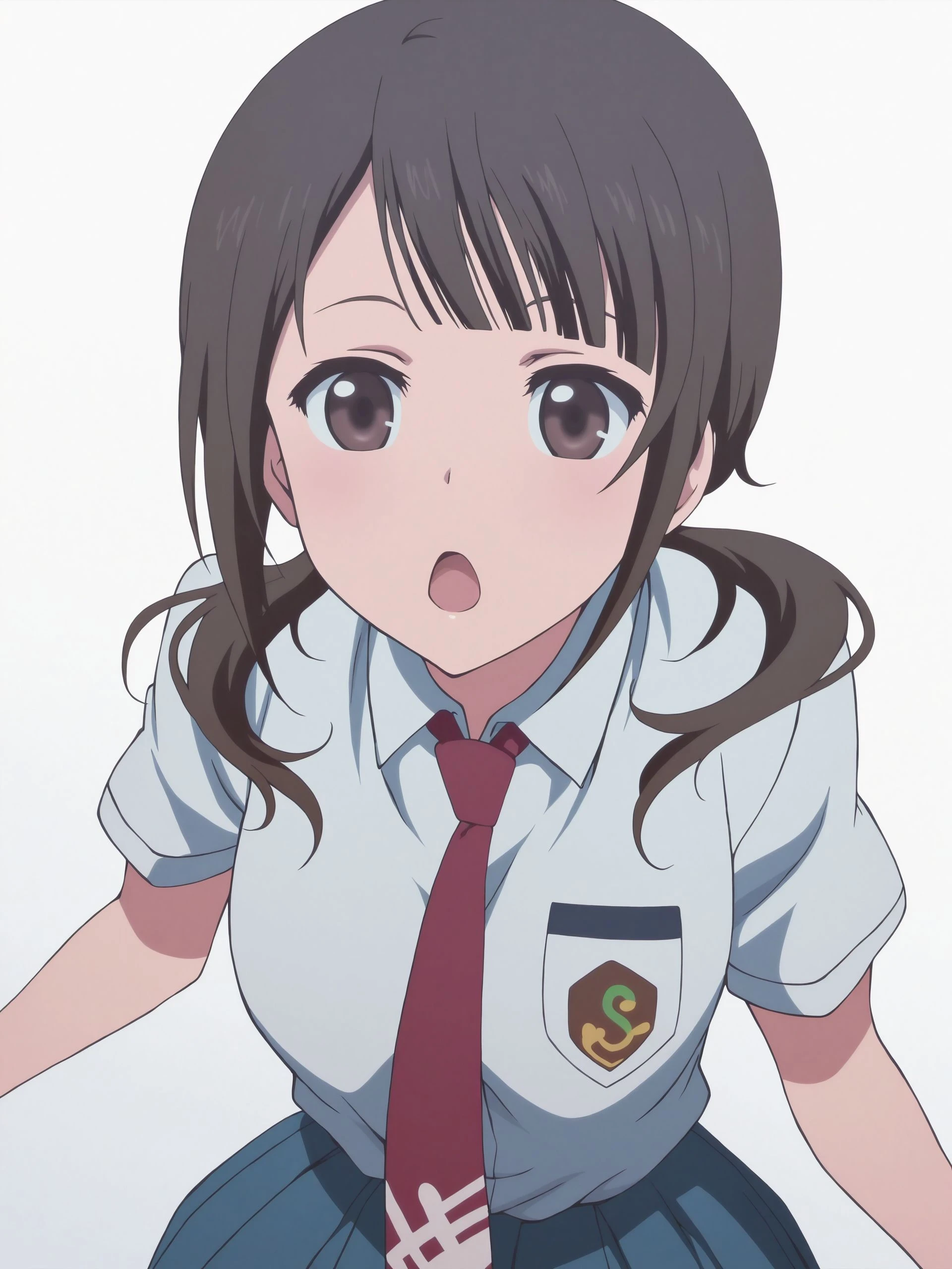 okita sawa,brown eyes, hair over shoulder, brown hair, low twintails,twintails,tari_tari,