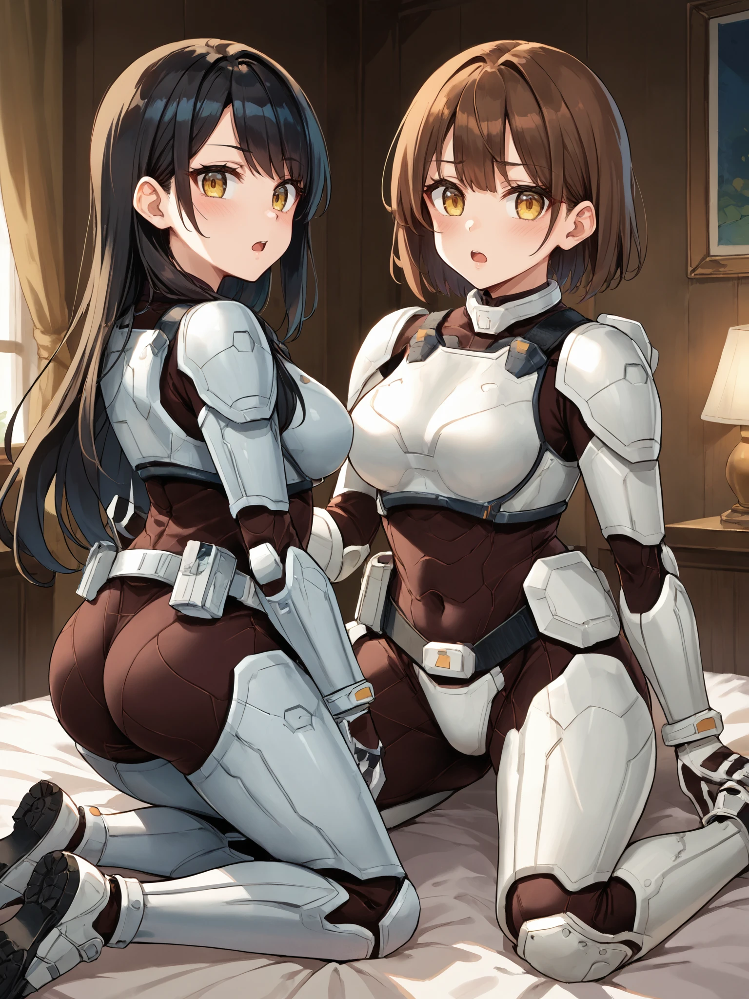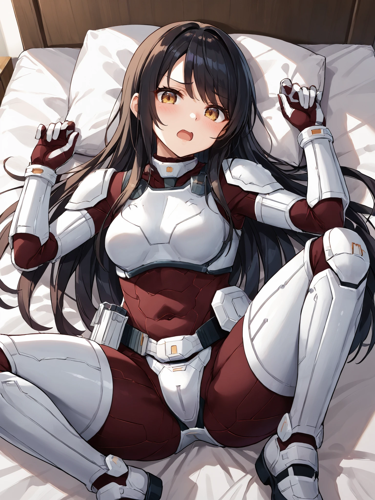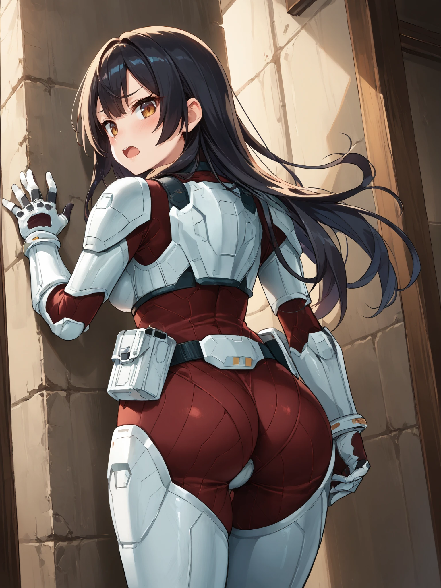 terraformarsmoviebodysuit, armored bodysuit, black bodysuit, white armor, boobplate, shoulder pads, wrist guards, black gloves, white gloves, utility belt, belt pouch, hip armor, crotch plate, thigh armorknee pads, shin guards, armored shoesDescription