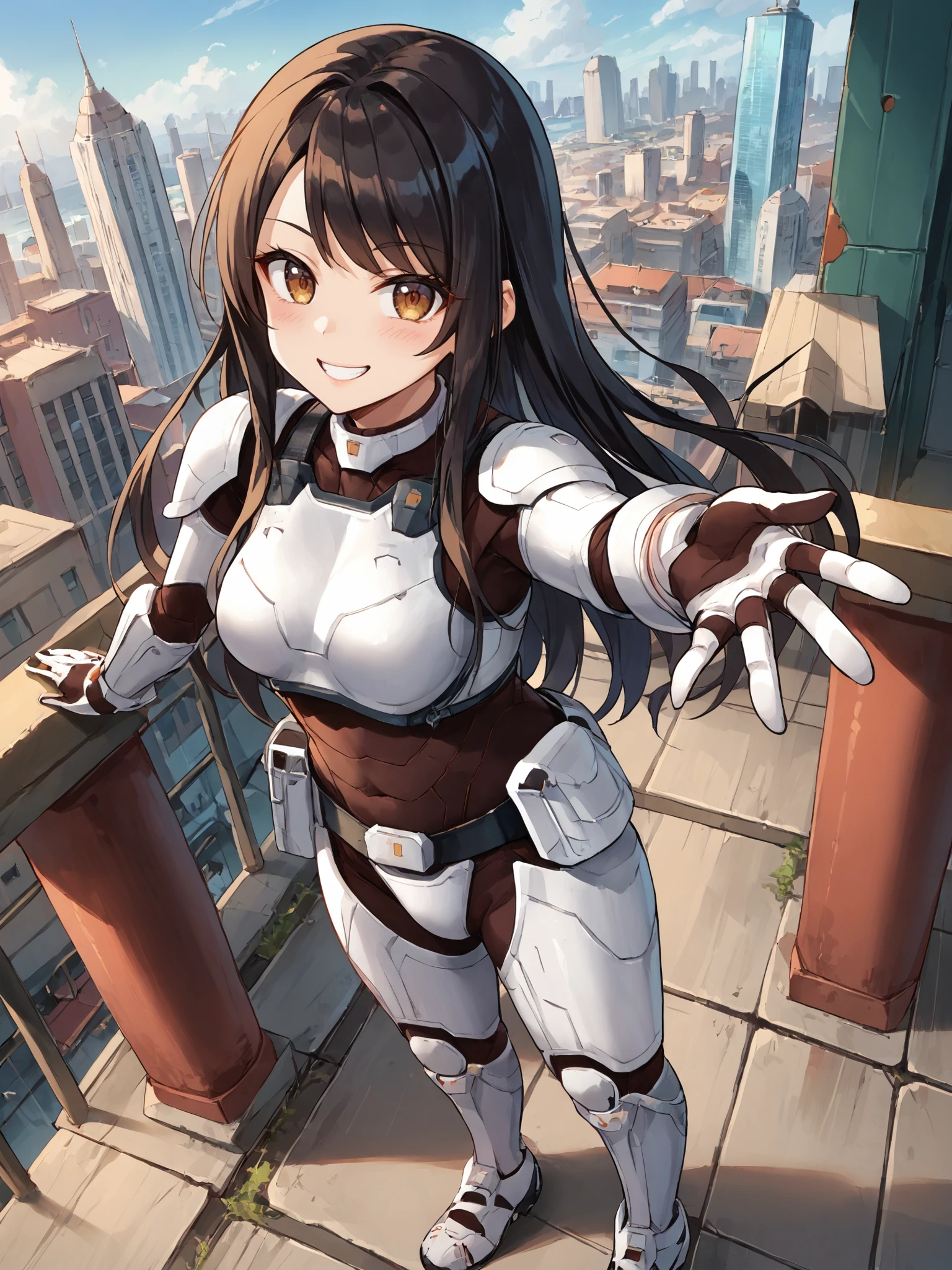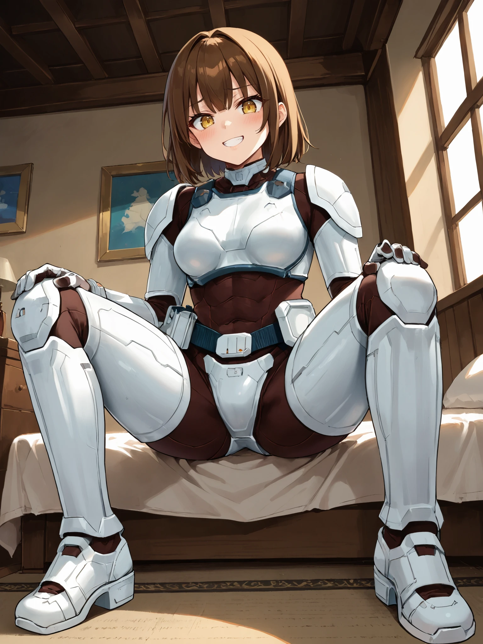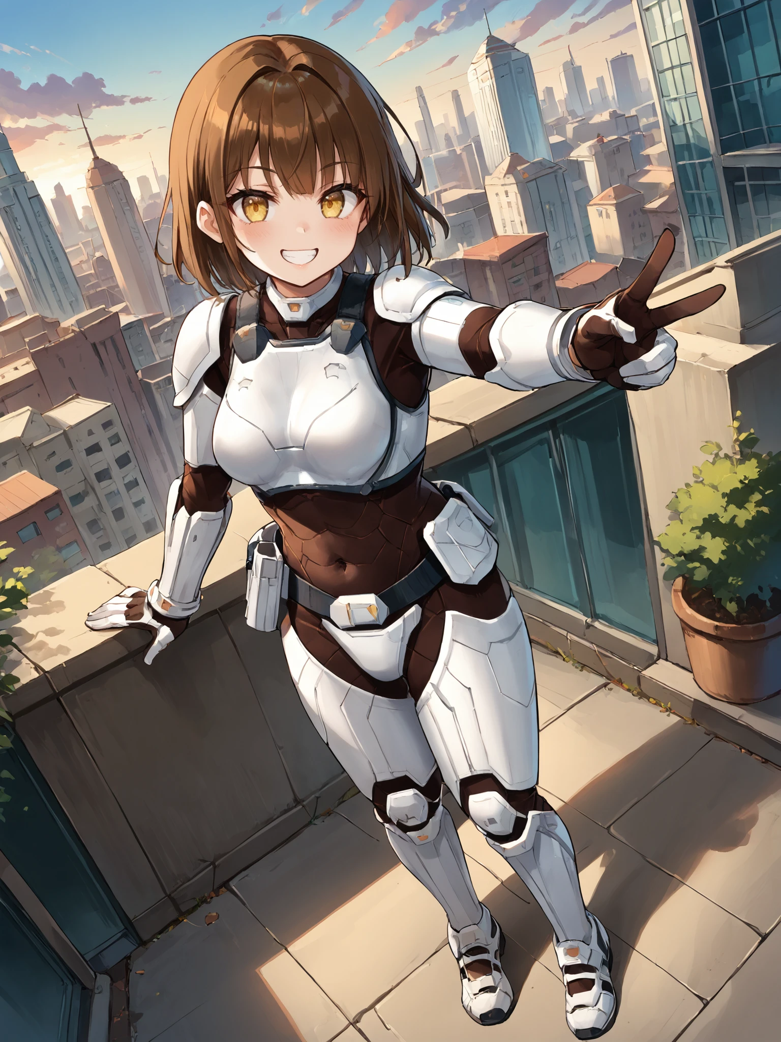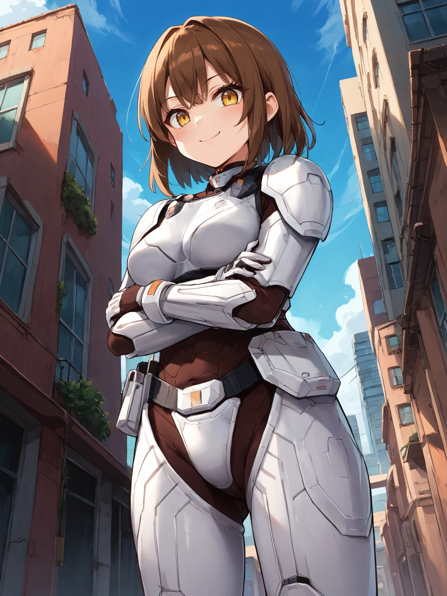 terraformarsmoviebodysuit, armored bodysuit, black bodysuit, white armor, boobplate, shoulder pads, wrist guards, black gloves, white gloves, utility belt, belt pouch, hip armor, crotch plate, thigh armorknee pads, shin guards, armored shoesDescription